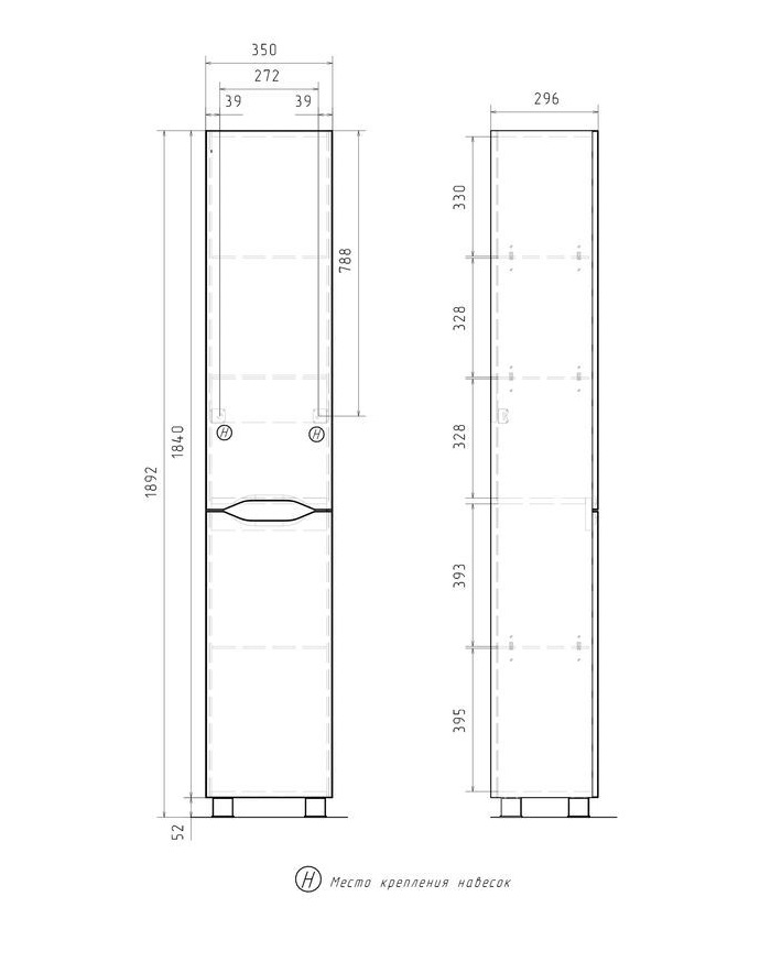 Шкаф-пенал Volna Lake 35 напольный, белый |