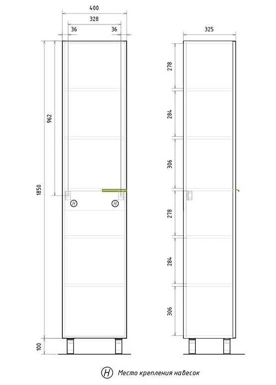 Шкаф-пенал Volna LottyGold 40 напольный, белый |