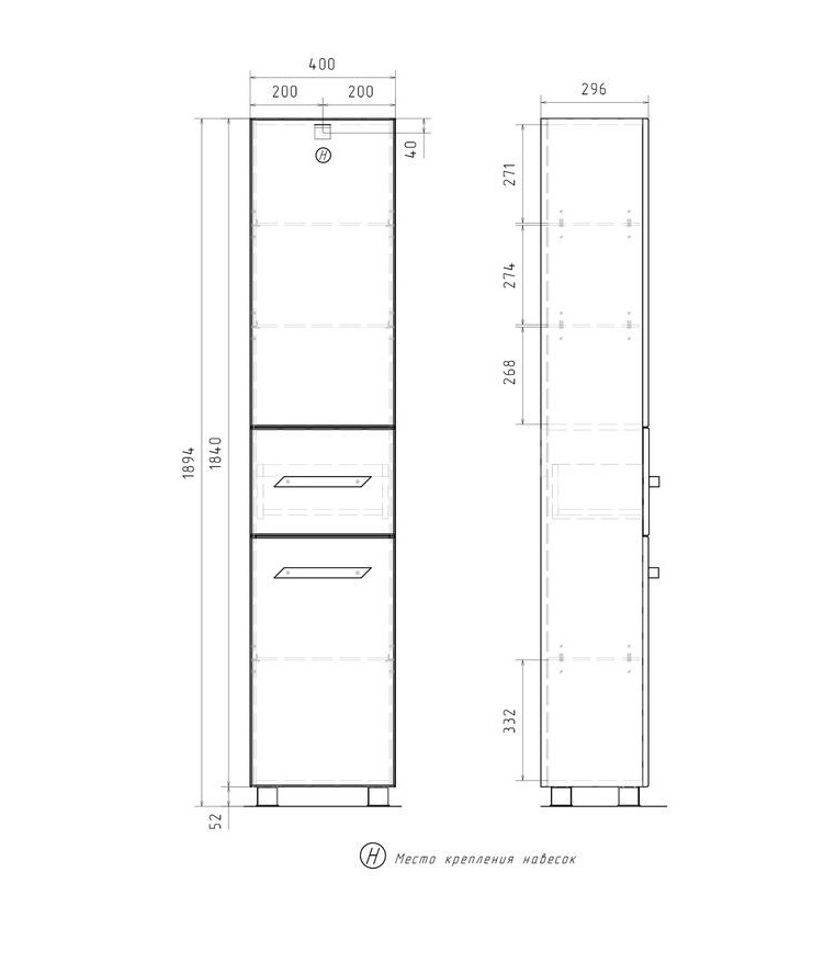 Шкаф-пенал Volna Onda 40 напольный, белый |