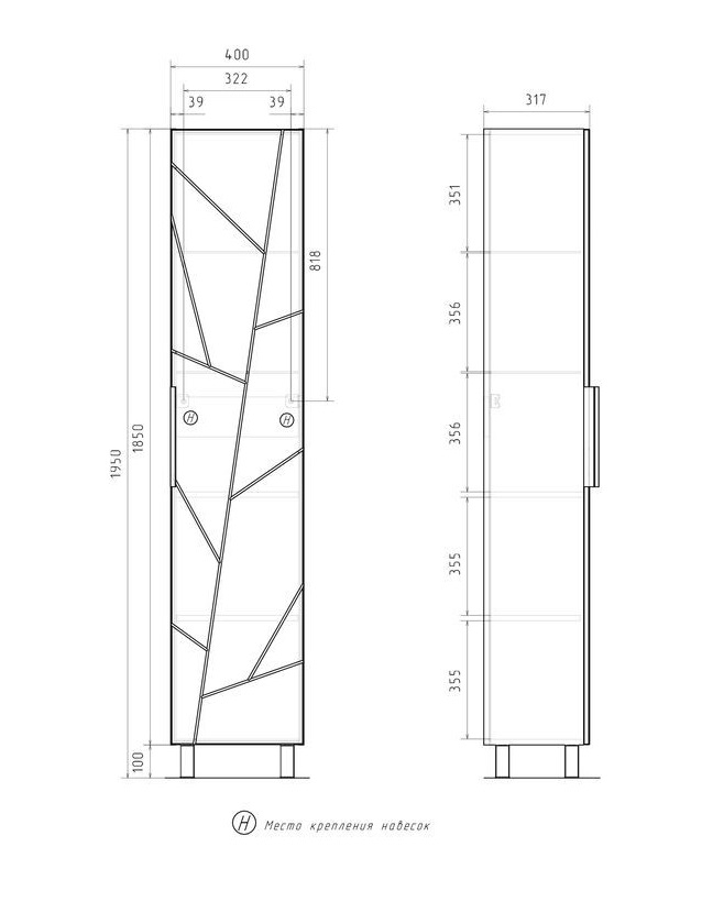 Шкаф-пенал Volna Twing 40 напольный, белый |