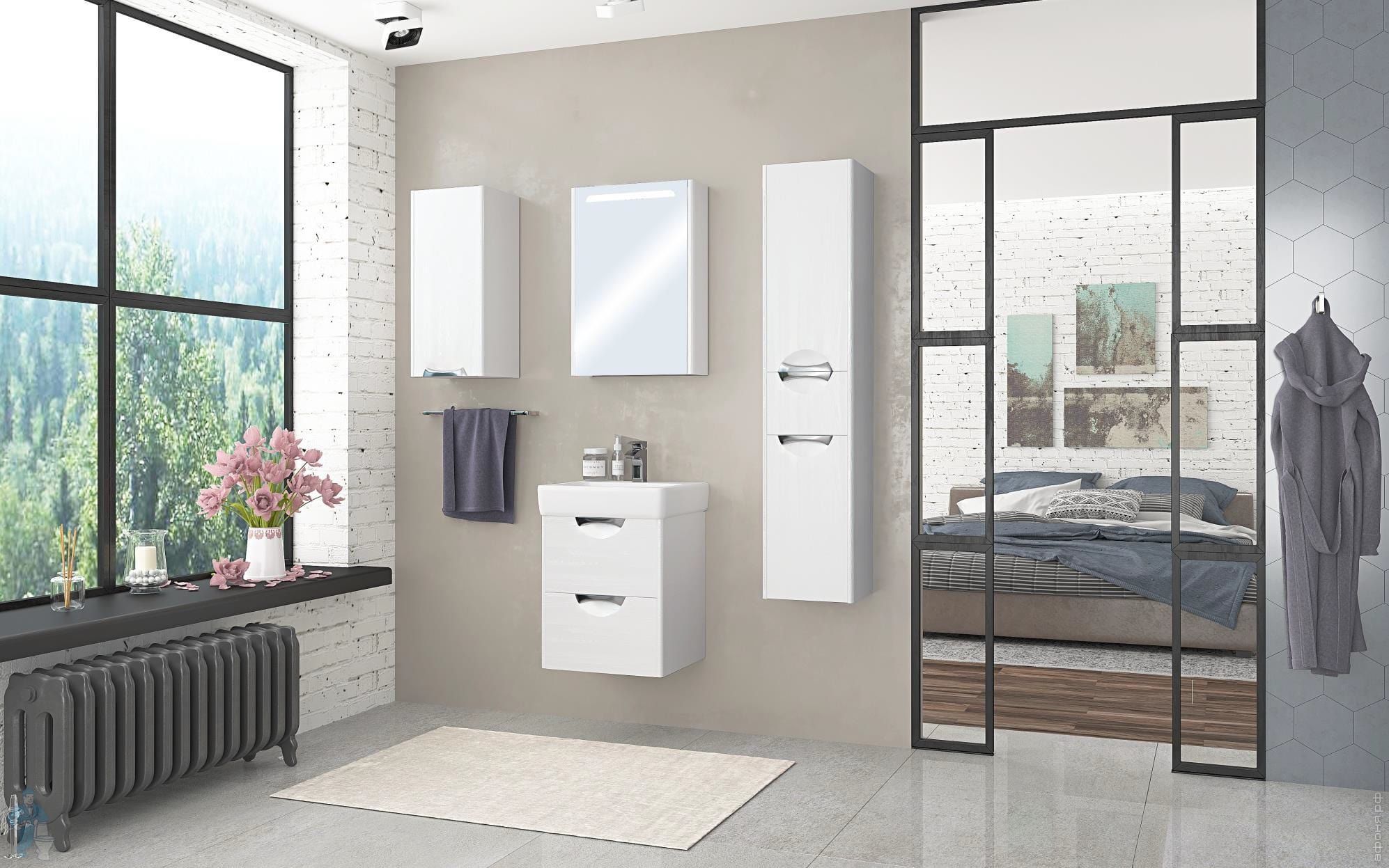 Шкаф-пенал Акватон Сильва L дуб полярный, с бельевой корзиной 1A215603SIW7L |