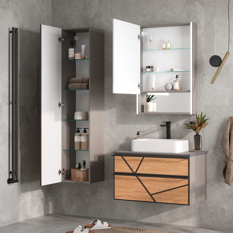 Шкаф-пенал Equil Ferro 36 подвесной L, лен антрацит, дуб мадера |