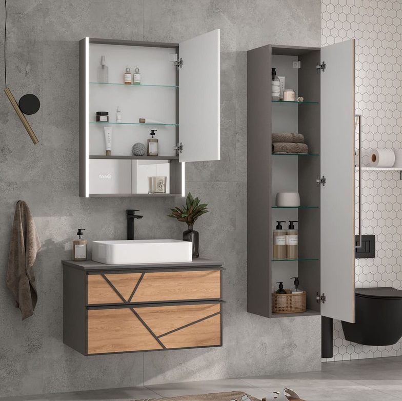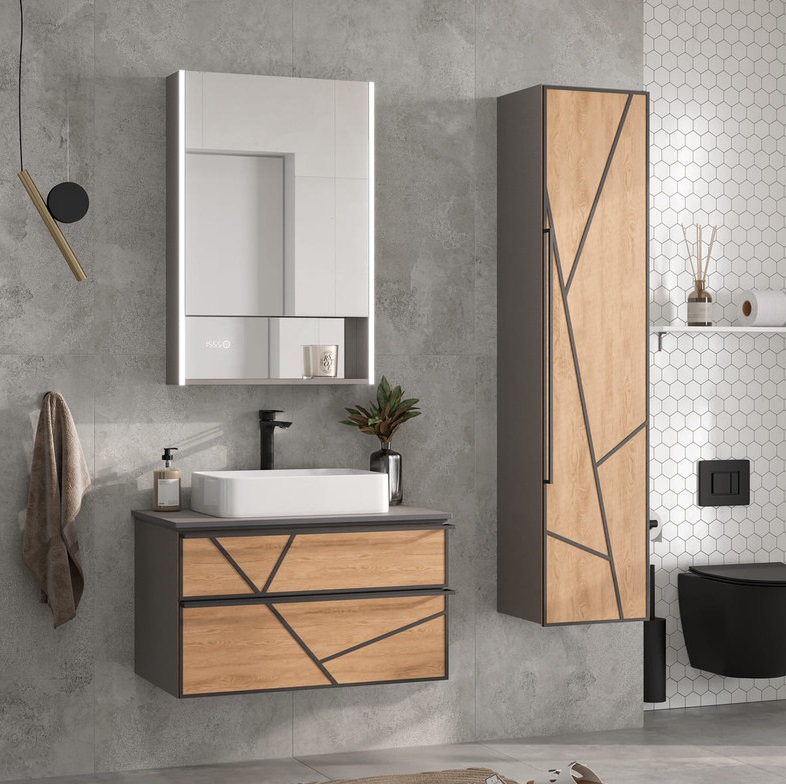 Шкаф-пенал Equil Ferro 36 подвесной R, лен антрацит, дуб мадера
