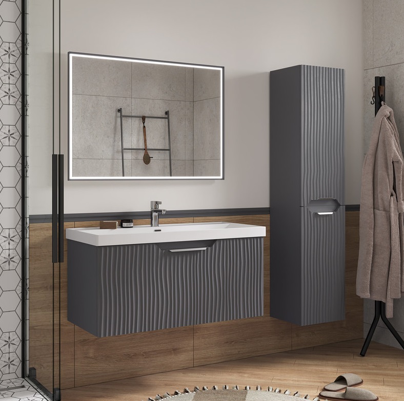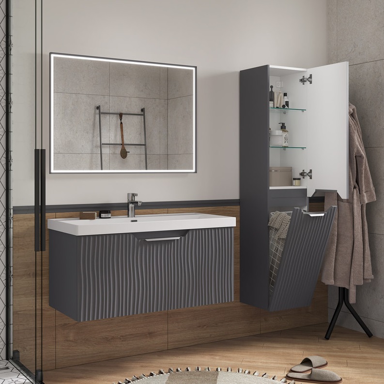 Шкаф-пенал Equil Mirage 36 подвесной R графит софт с бельевой корзиной