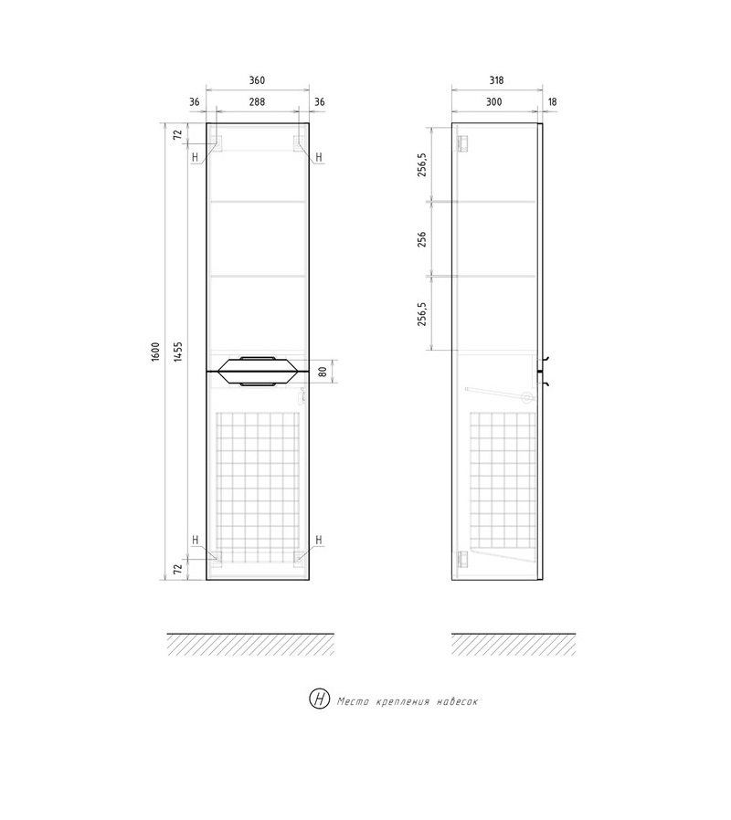 Шкаф-пенал Equil Mirage 36 подвесной R графит софт с бельевой корзиной |