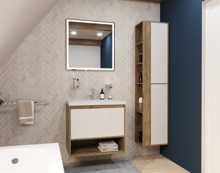 Шкаф-пенал Эстет Monaco Wood 35 L подвесной с открытой полкой белый, дуб рустикальный |