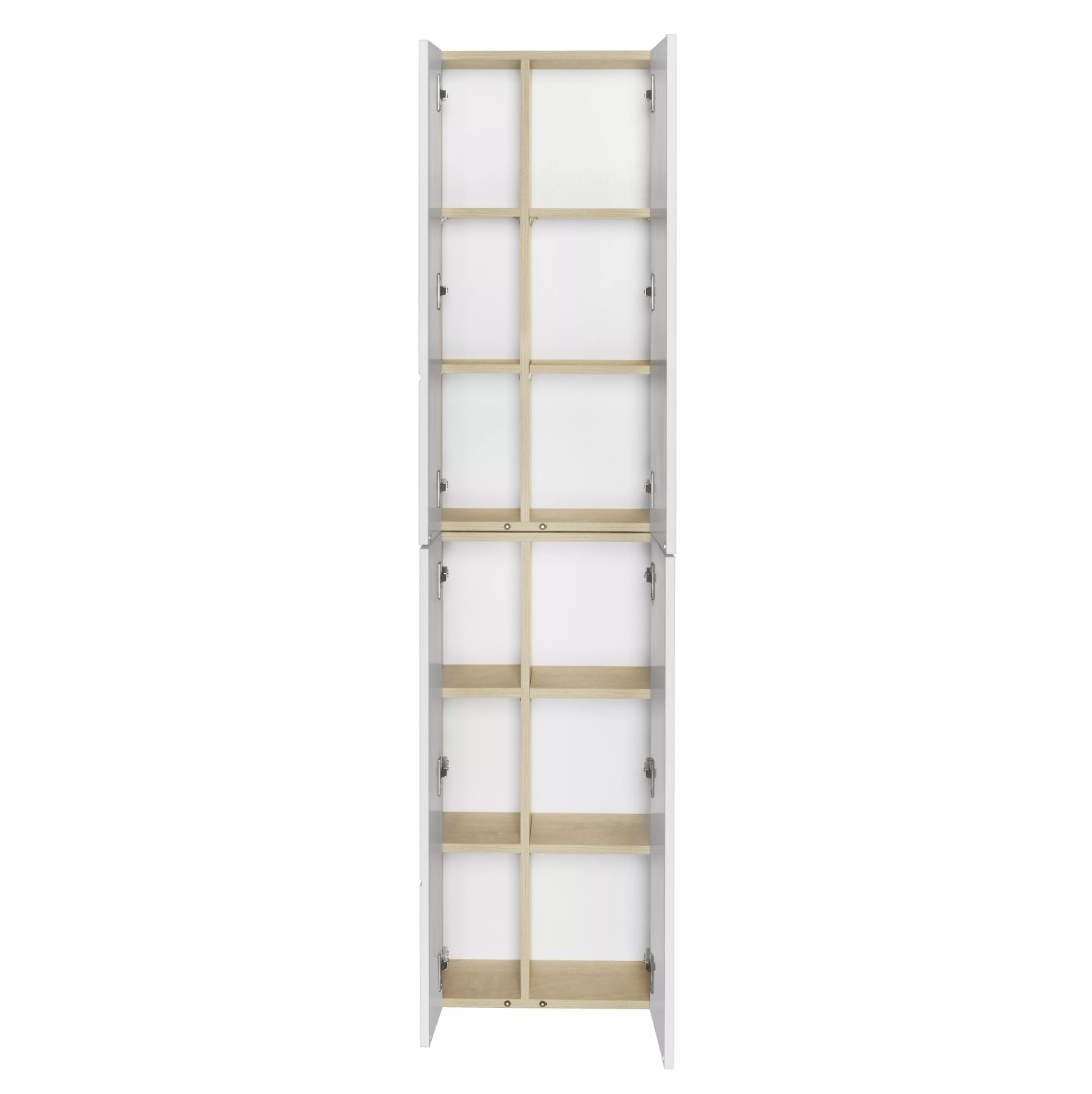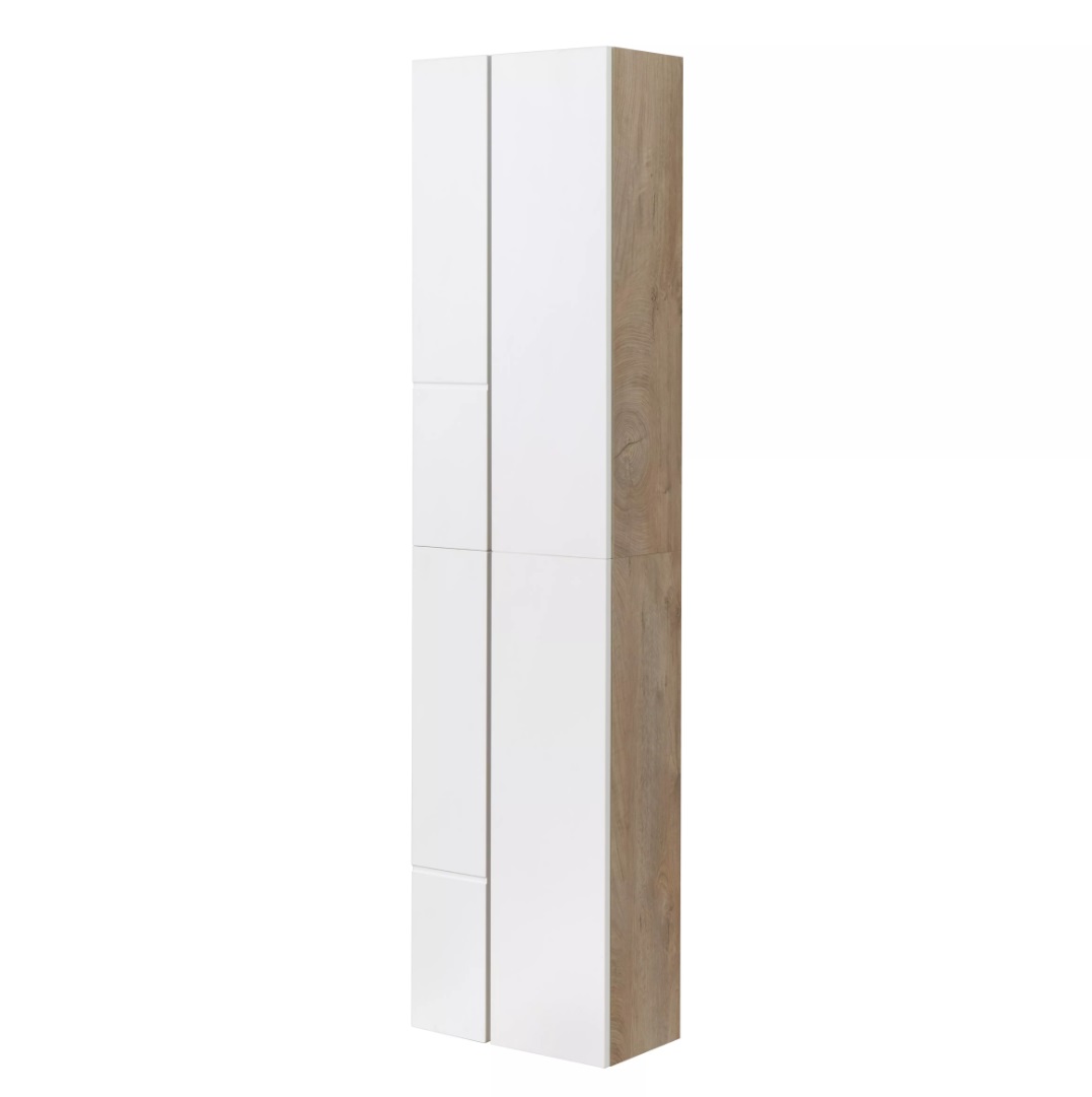 Дополняет коллекцию Мишель удобный шкафчик. При желании из двух шкафчиков можно составить вместительную шкаф-колонну. Все фасады оснащены системой открывания push-to-open. Дизайн шкафчика повторяет тумбу-умывальник: фасады в матовой пленке фьерд сочетаются с корпу-сом в декоре дуб рустикальный.