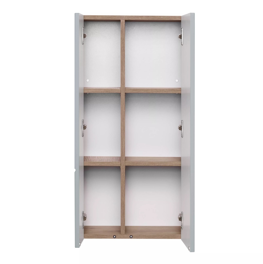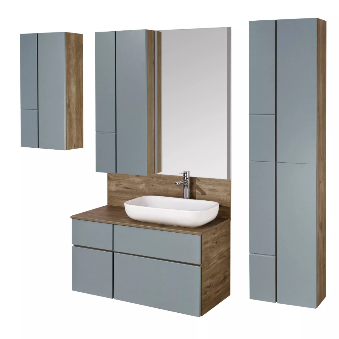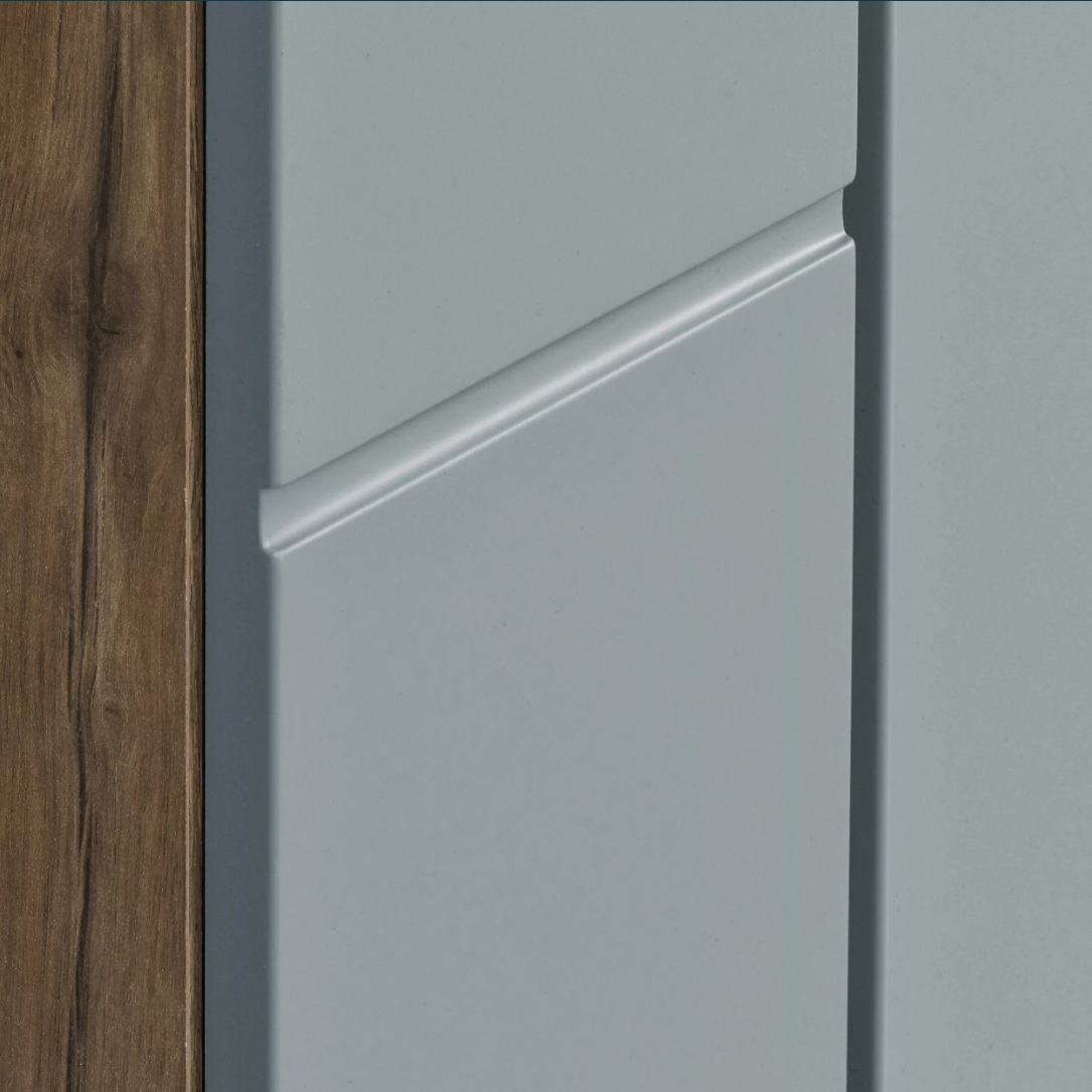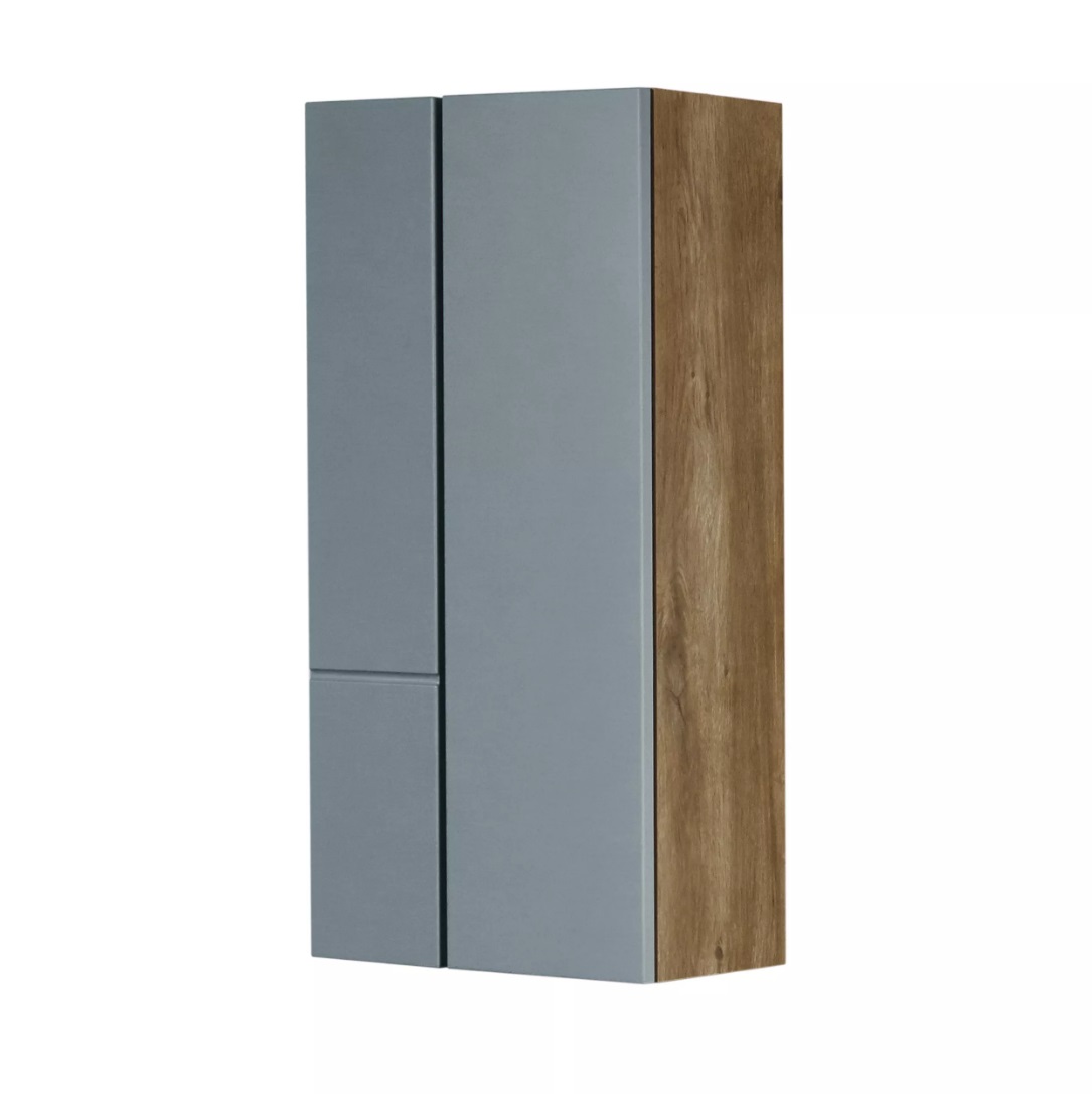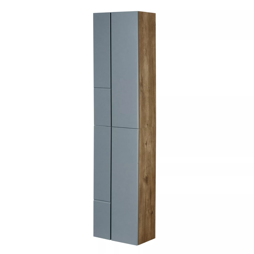 Дополняет коллекцию Мишель удобный шкафчик. При желании из двух шкафчиков можно составить вместительную шкаф-колонну. Все фасады оснащены системой открывания push-to-open. Дизайн шкафчика повторяет тумбу-умывальник: фасады в матовой пленке фьерд сочетаются с корпу-сом в декоре дуб рустикальный.