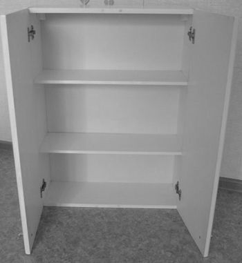изготовлен из ламинированной ДСП, а фасады выкрашены белой эмалью.