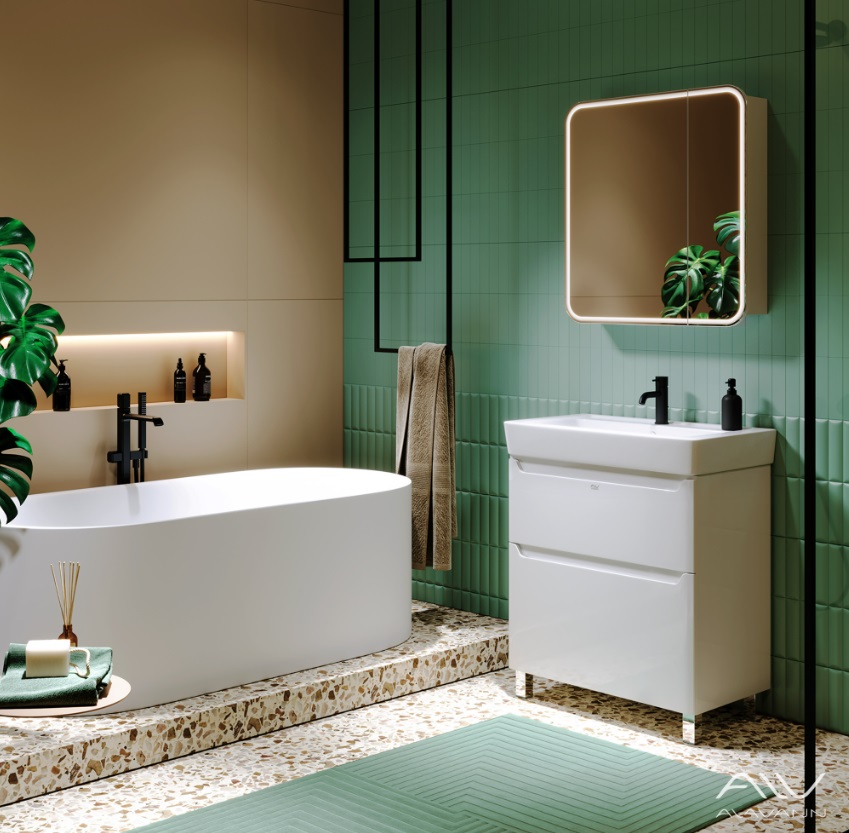 Тумба с раковиной Alavann Lana 80 белая с раковиной Q 80