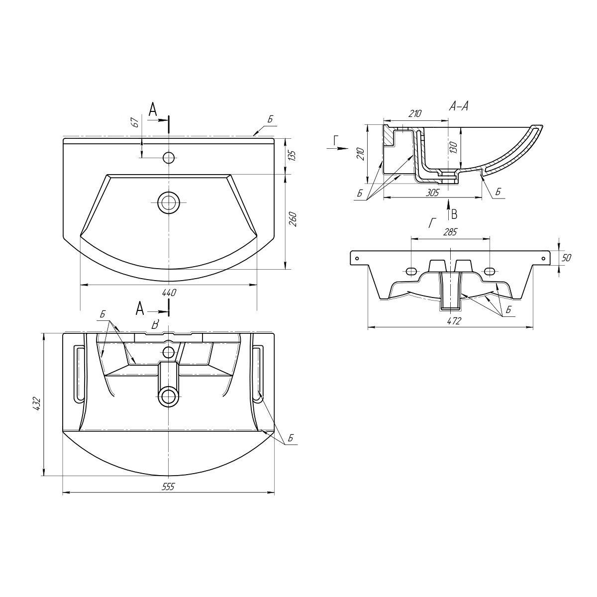 - Раковина Альфа 55 (производство – Чехия) / Элеганс 55, Россия.