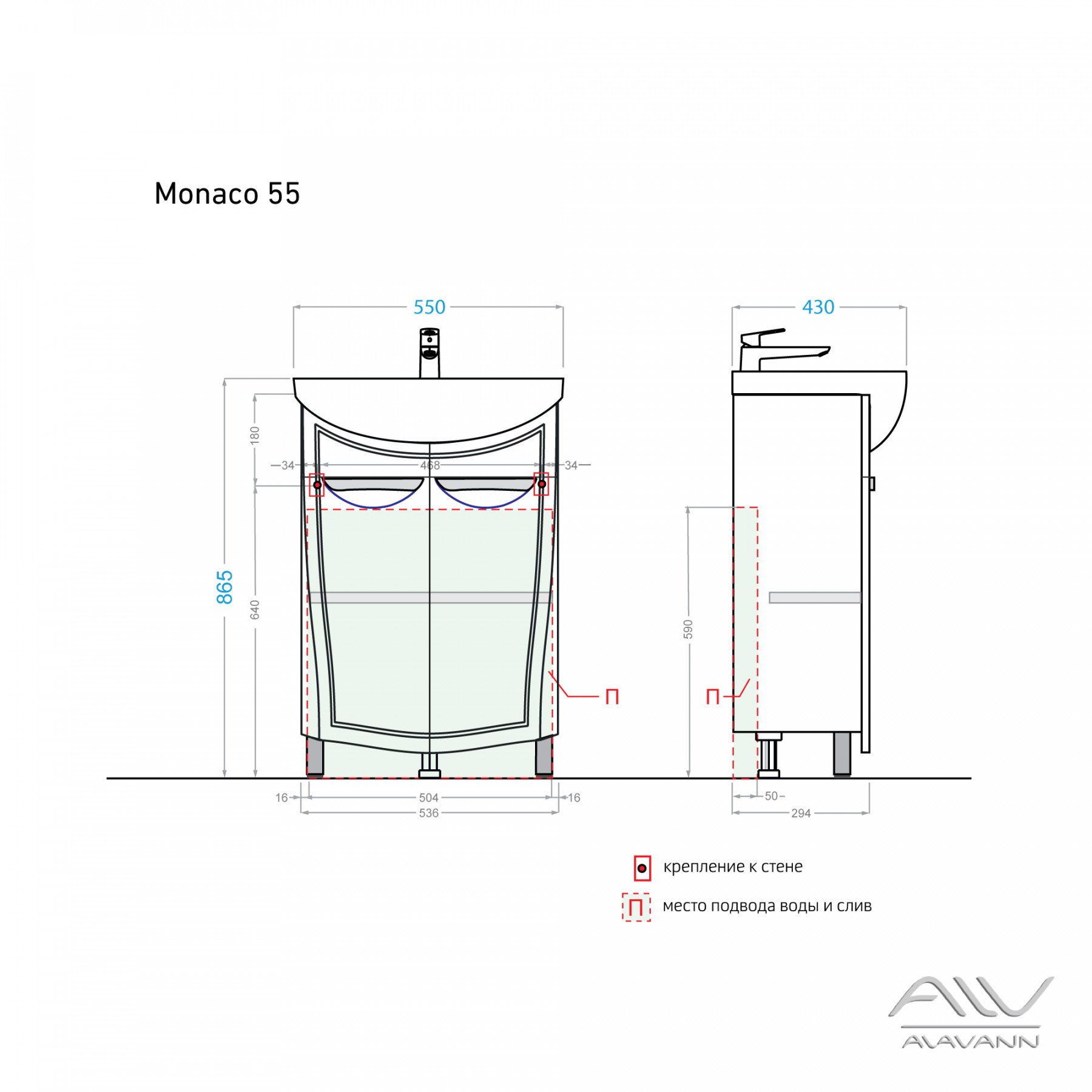 Тумба с раковиной Alavann Monaco 55 белая