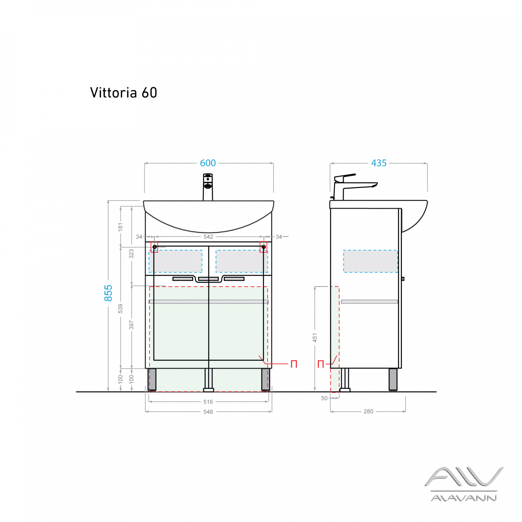 Тумба с раковиной Alavann Vittoria 60 белая |