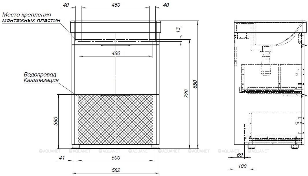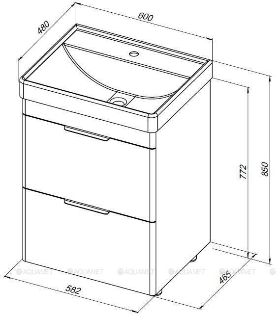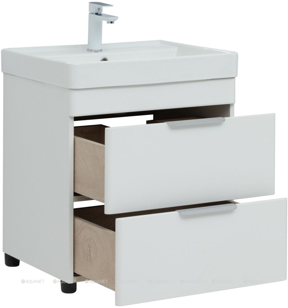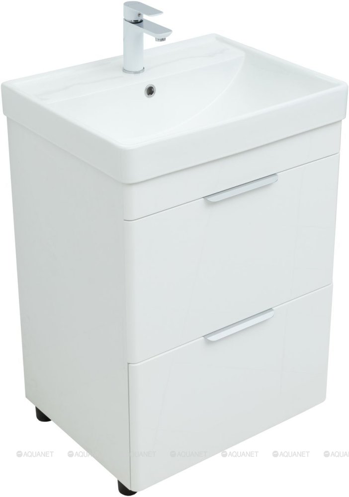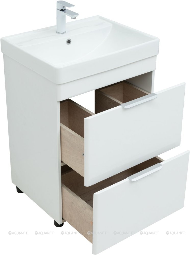 Тумба с раковиной Aquanet Ирис new 60 2 ящика, напольная |