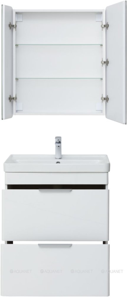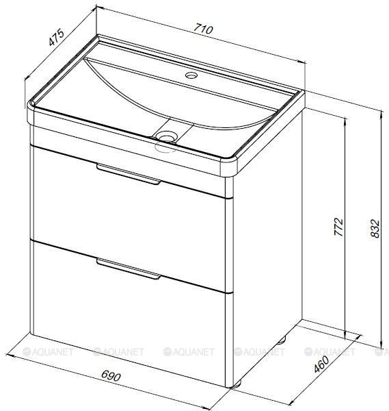 Тумба с раковиной Aquanet Ирис new 70 2 ящика, напольная |