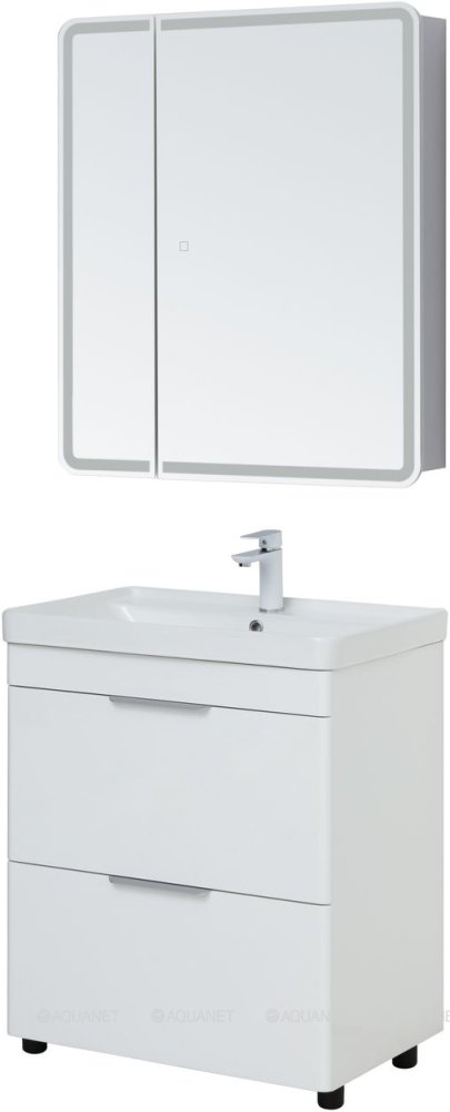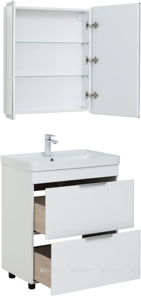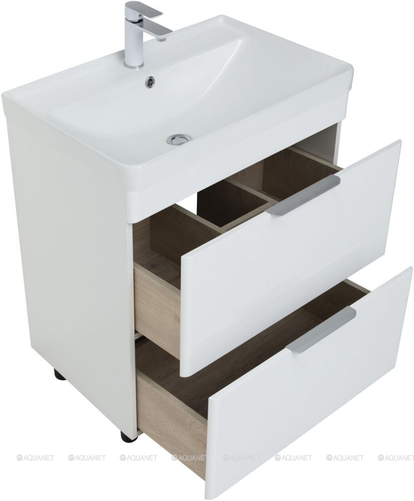 Тумба с раковиной Aquanet Ирис new 70 2 ящика, напольная