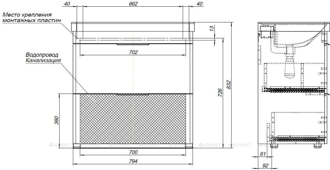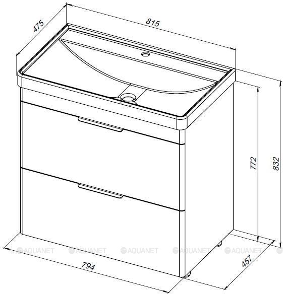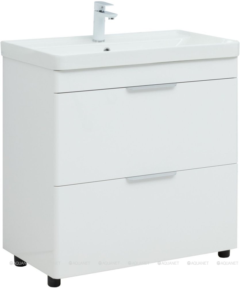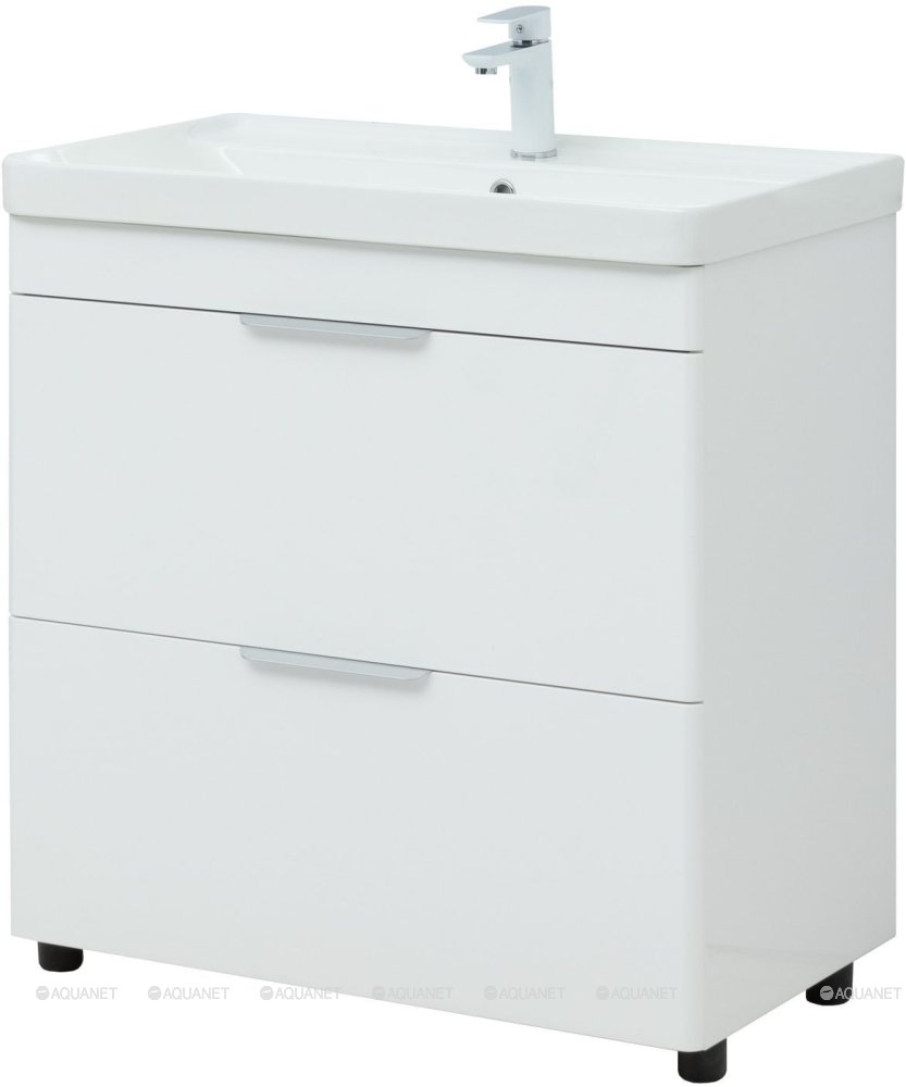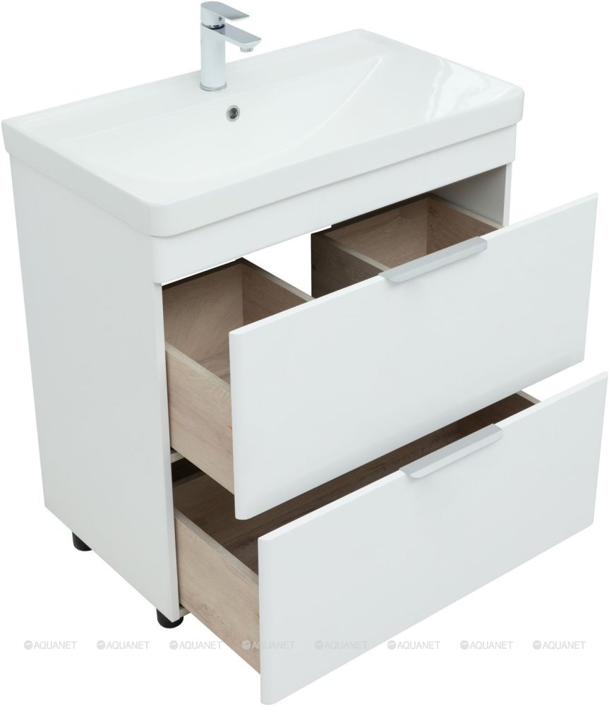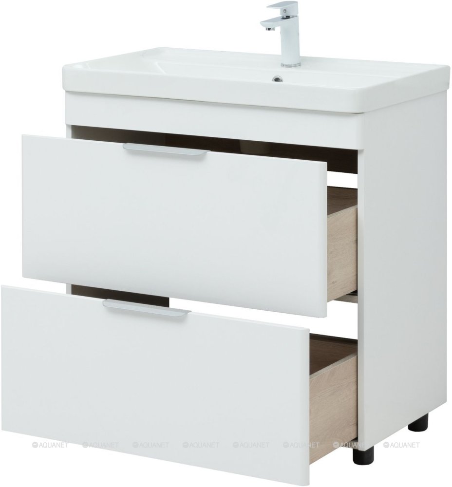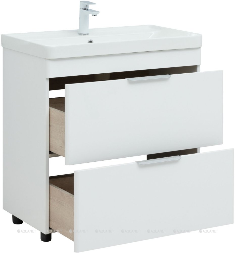 Тумба с раковиной Aquanet Ирис new 80 2 ящика, напольная |