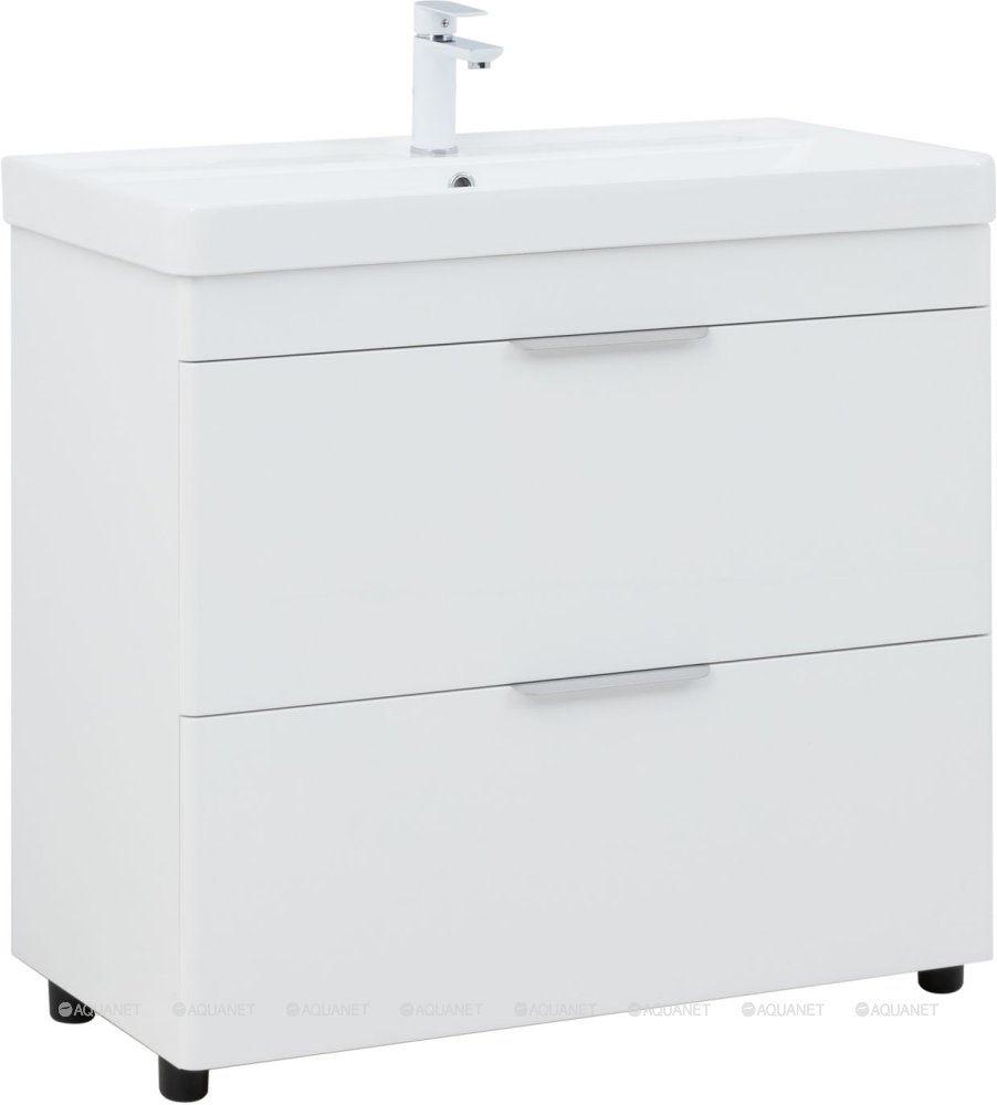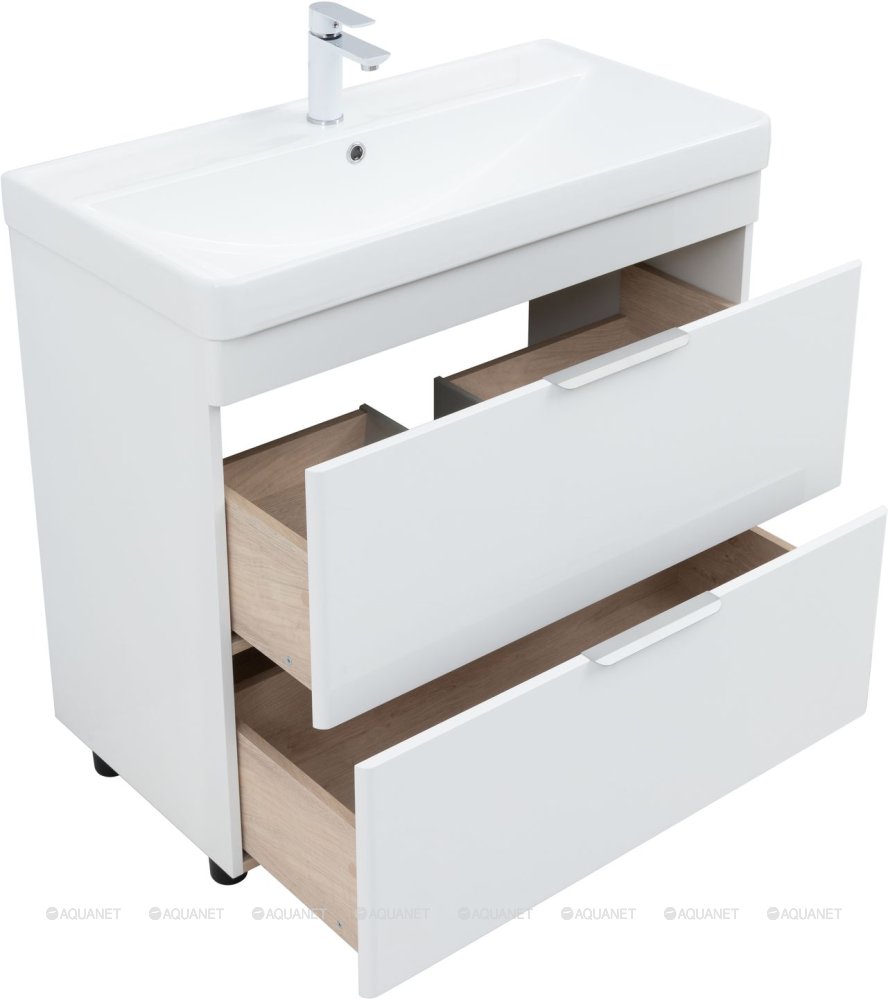 Тумба с раковиной Aquanet Ирис new 90 2 ящика, напольная