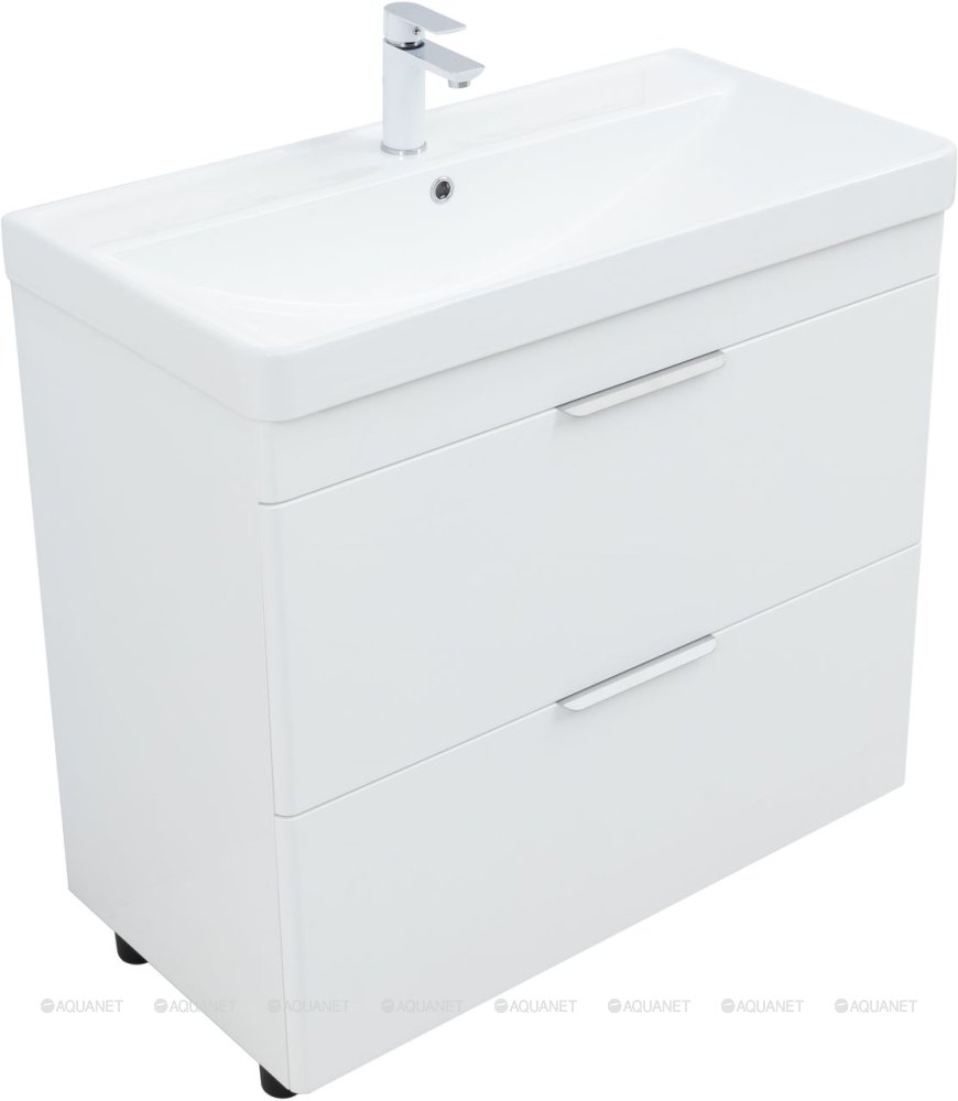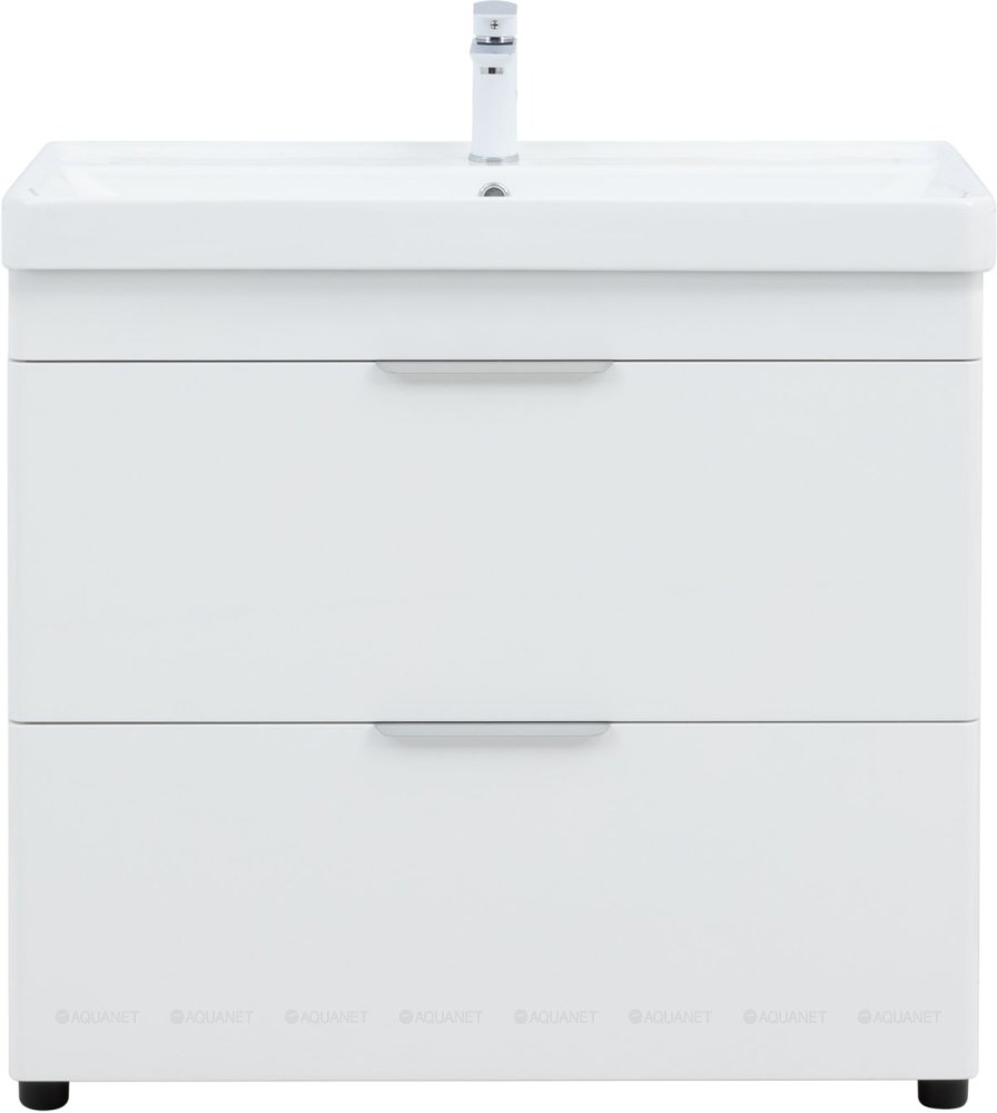 Тумба с раковиной Aquanet Ирис new 90 2 ящика, напольная |