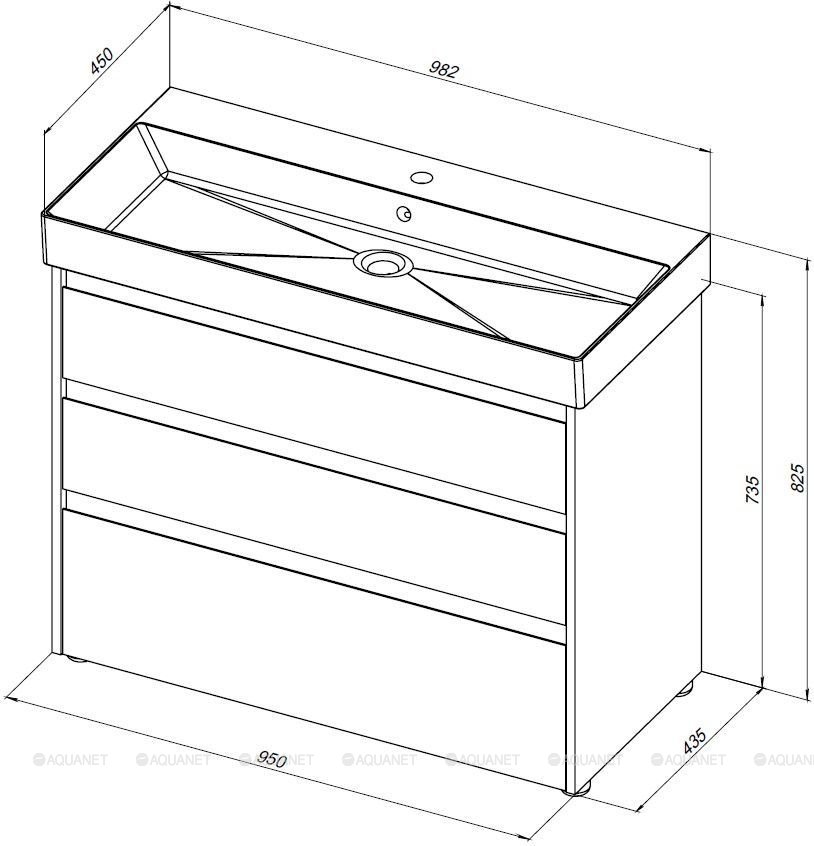 Тумба с раковиной Aquanet Nova Lite 100 3 ящика белый |