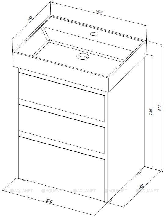 Тумба с раковиной Aquanet Nova Lite 60 3 ящика дуб рустикальный |
