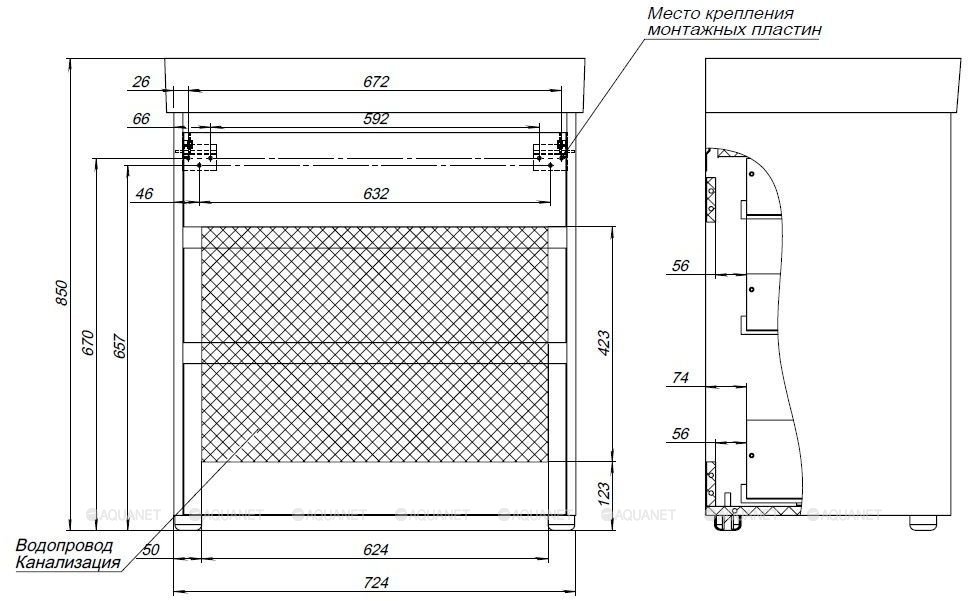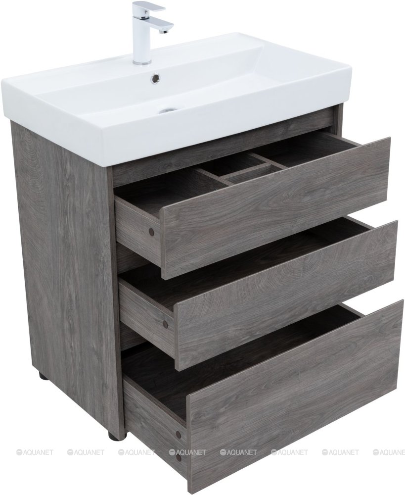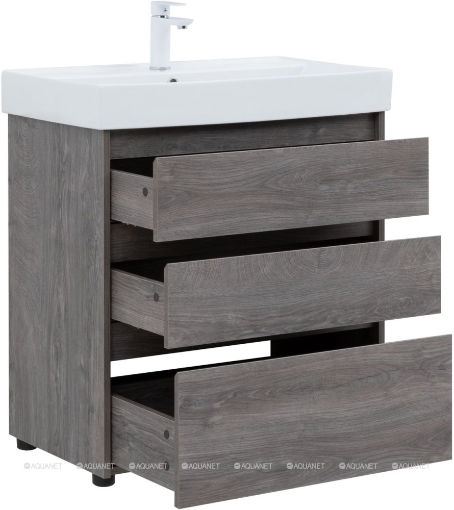 Тумба с раковиной Aquanet Nova Lite 75 3 ящика дуб рошелье |