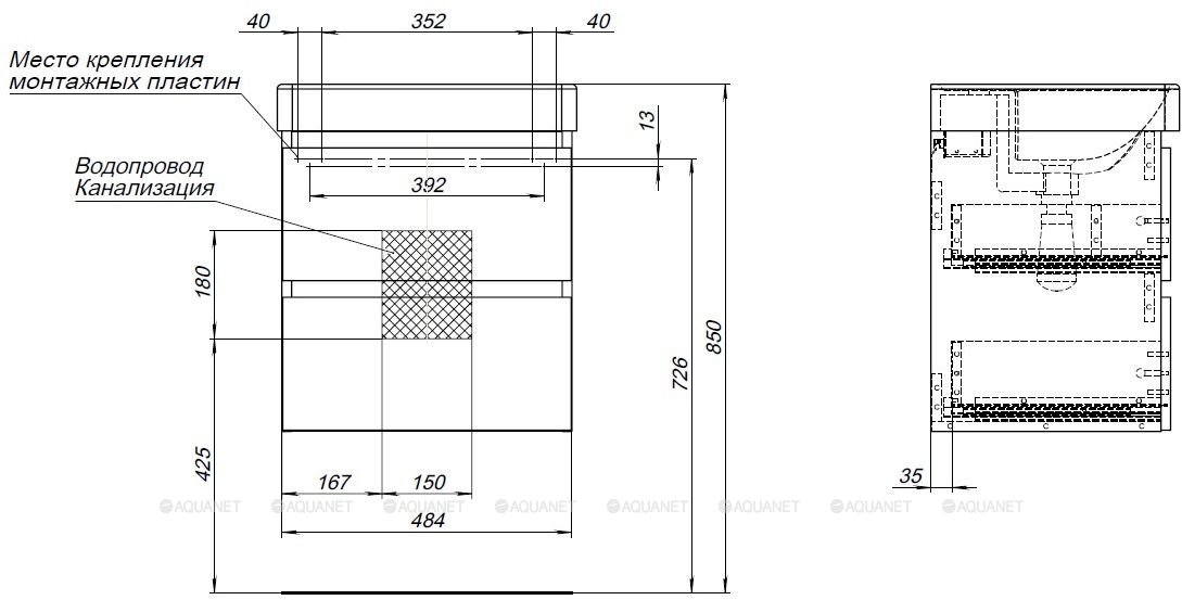 Тумба с раковиной Aquanet Вега 120 L |