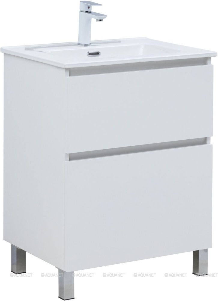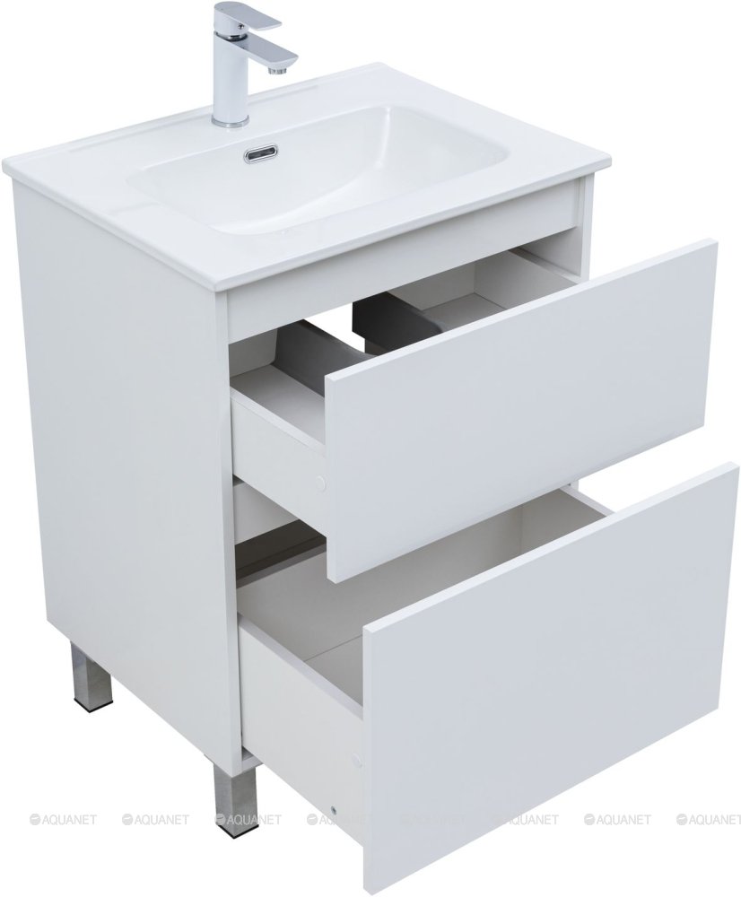 Тумба с раковиной Aquanet Вега 60 Flat 2 ящика напольная