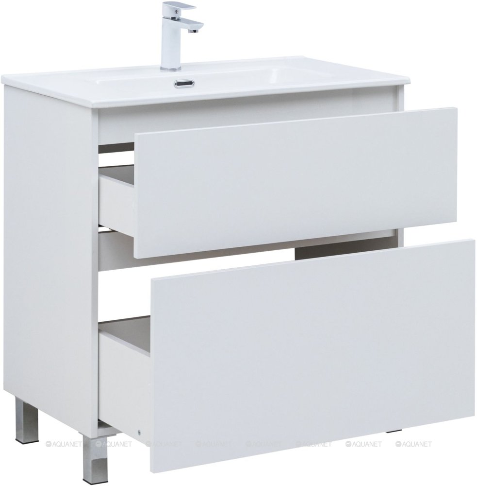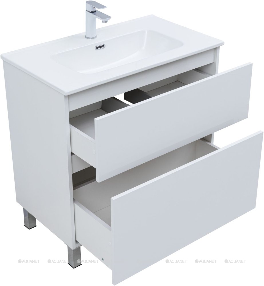 Тумба с раковиной Aquanet Вега 80 Flat 2 ящика напольная