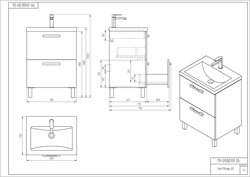 Тумба с раковиной Cersanit Melar 60 со смесителем
