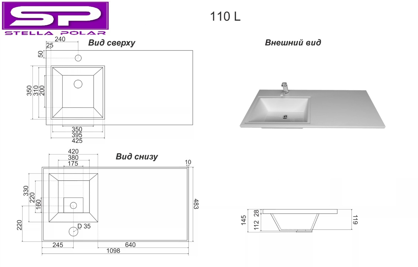 Тумба с раковиной Corozo Леон 110 L напольная, белая |