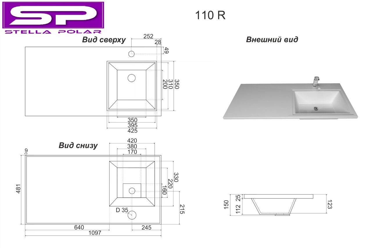 Тумба с раковиной Corozo Леон 110 R напольная, белая