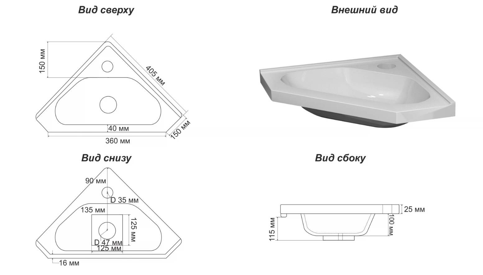 Тумба с раковиной Corozo Мирра 35 напольная, угловая, белая