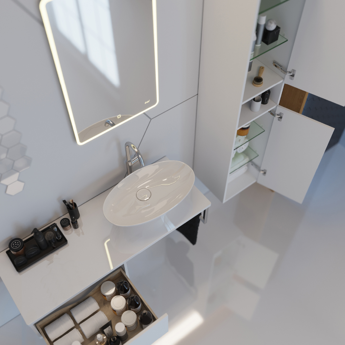 Тумба с раковиной Dreja Box + Line 120 R белая