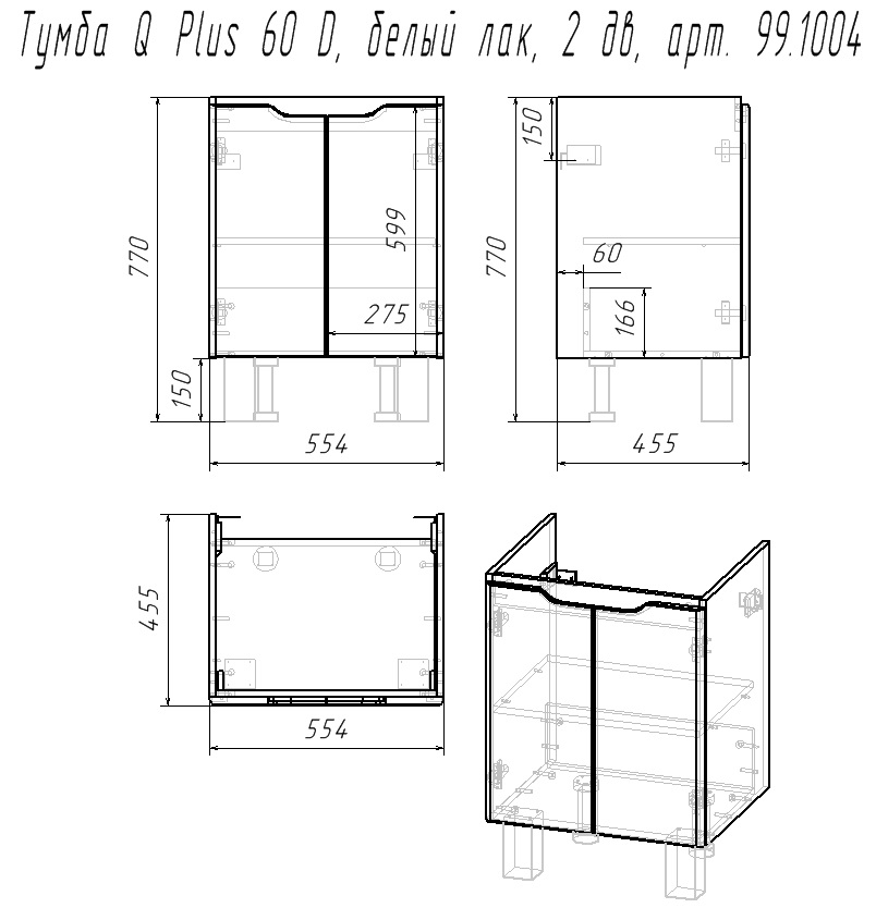 Тумба с раковиной Dreja Q (D) 60 напольная, белая