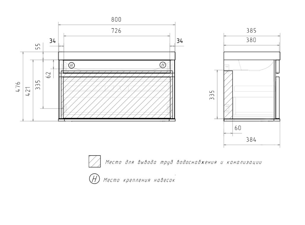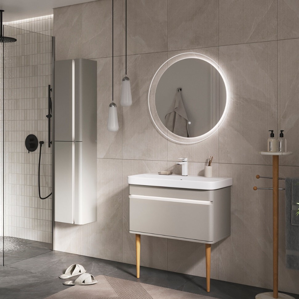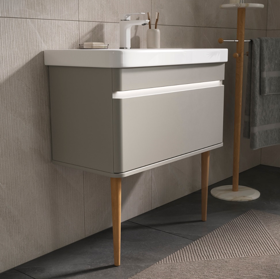 Тумба с раковиной Equil Elegante 80 напольная, 1 ящика, амарок, белый, с подсветкой |
