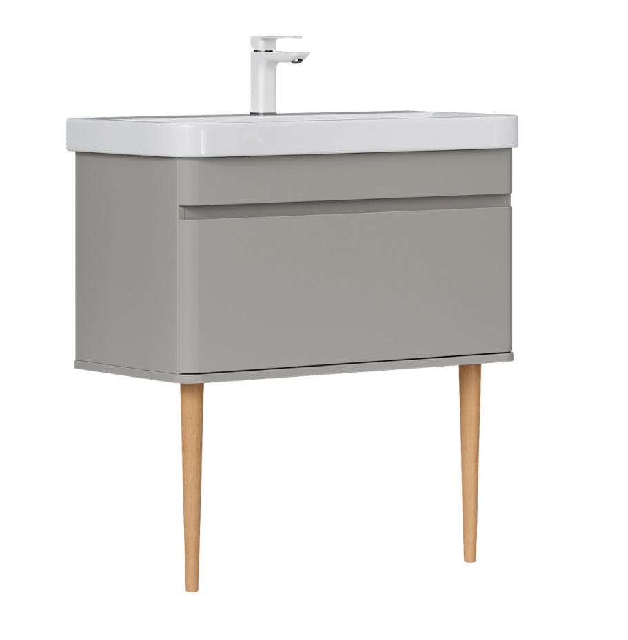 Тумба с раковиной Equil Elegante 80 напольная, 1 ящика, амарок, белый, с подсветкой