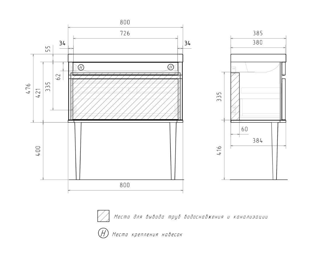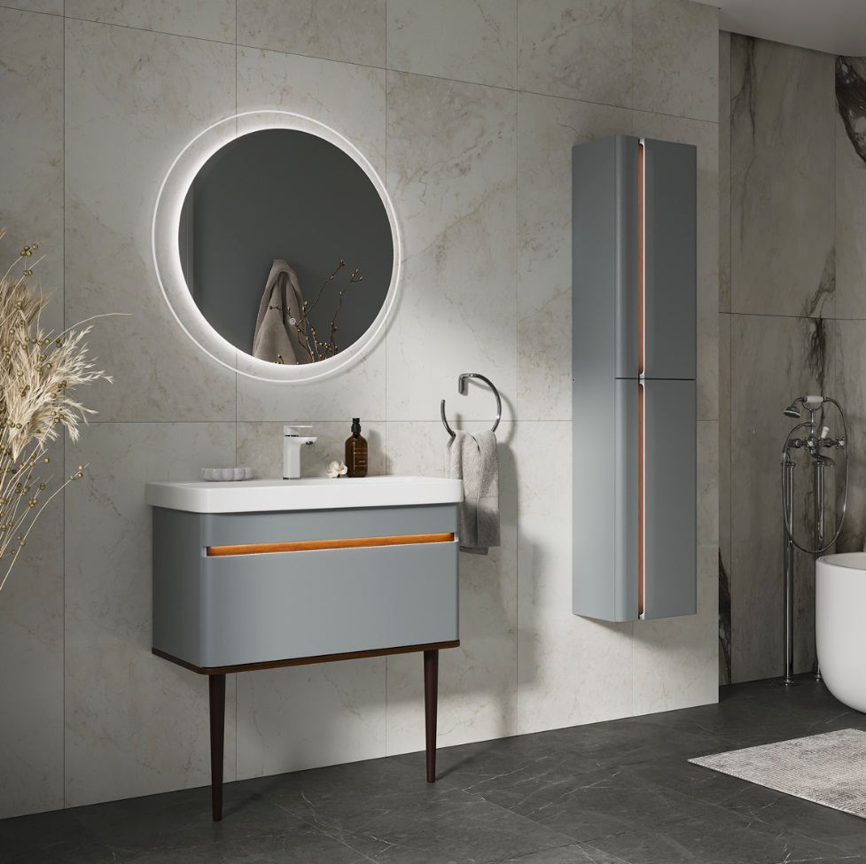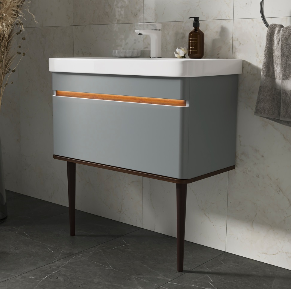 Тумба с раковиной Equil Elegante 80 напольная, 1 ящика, мэйджик, дуб голиано, с подсветкой |