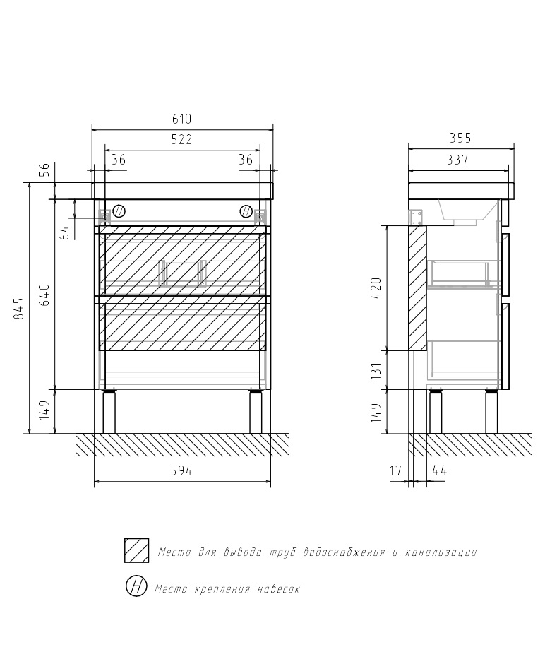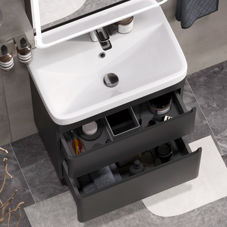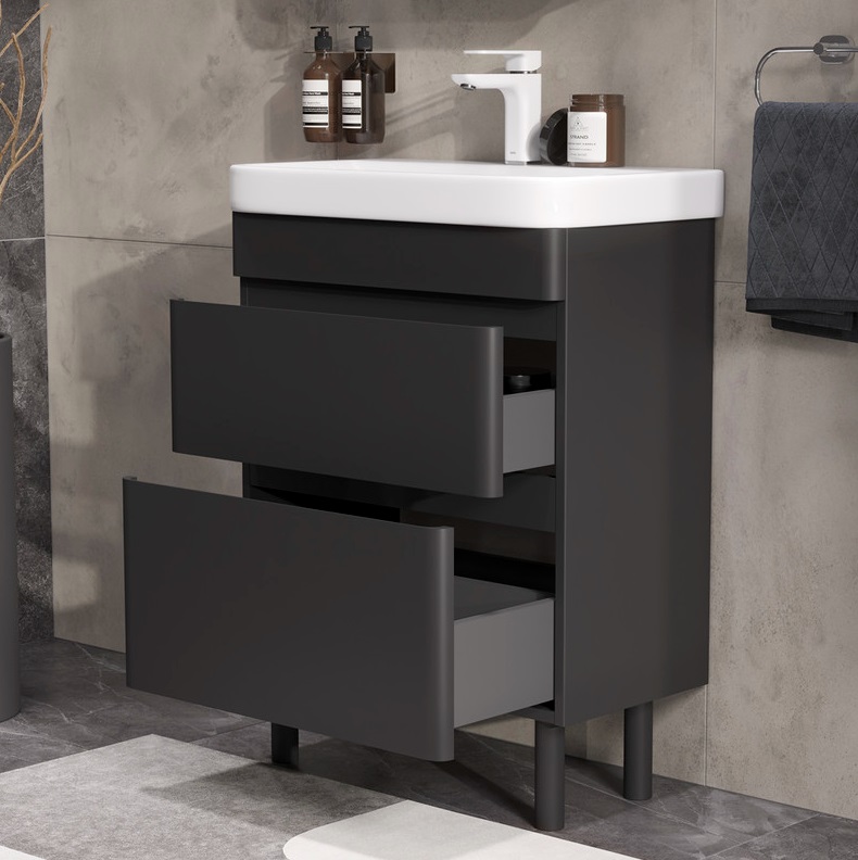 Тумба с раковиной Equil Eltoro 60 напольная, 2 ящика, черный софт