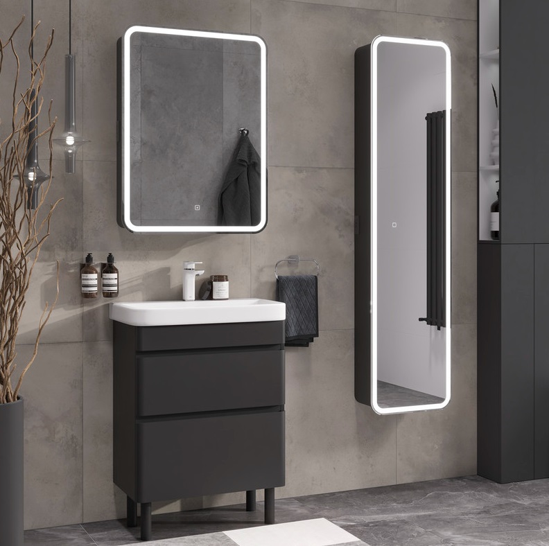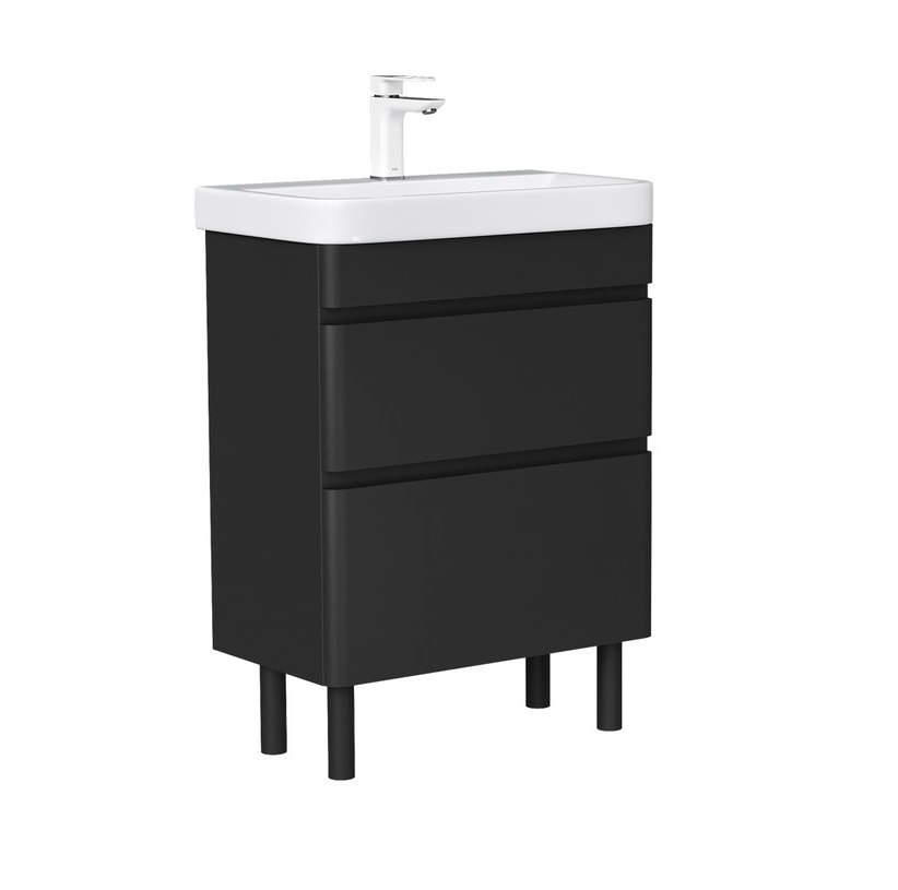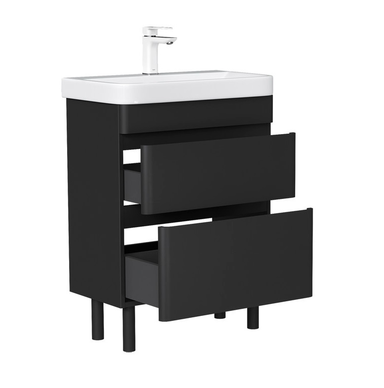 Тумба с раковиной Equil Eltoro 60 напольная, 2 ящика, черный софт |