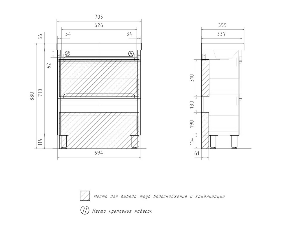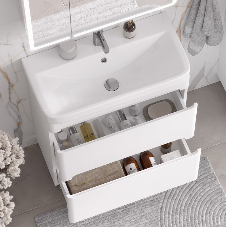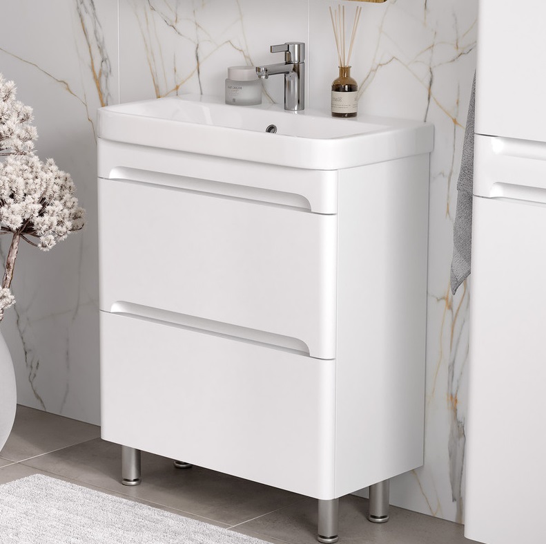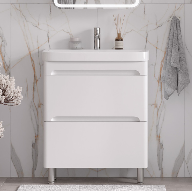 Тумба с раковиной Equil Nice 70 напольная, 2 ящика, белый |