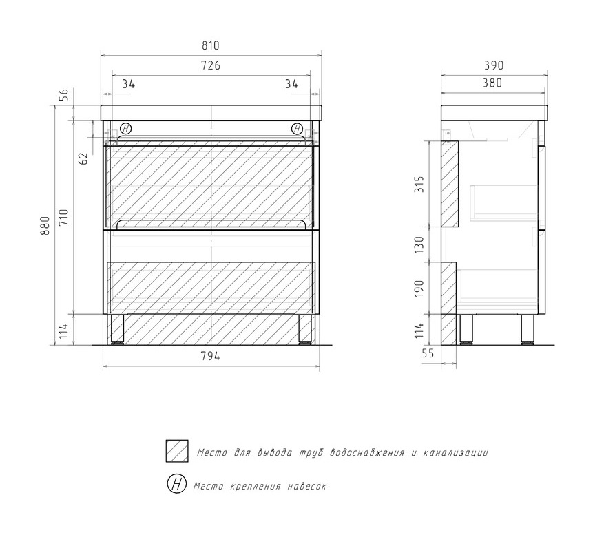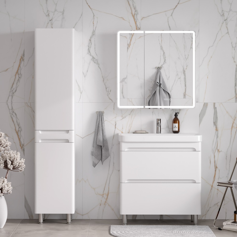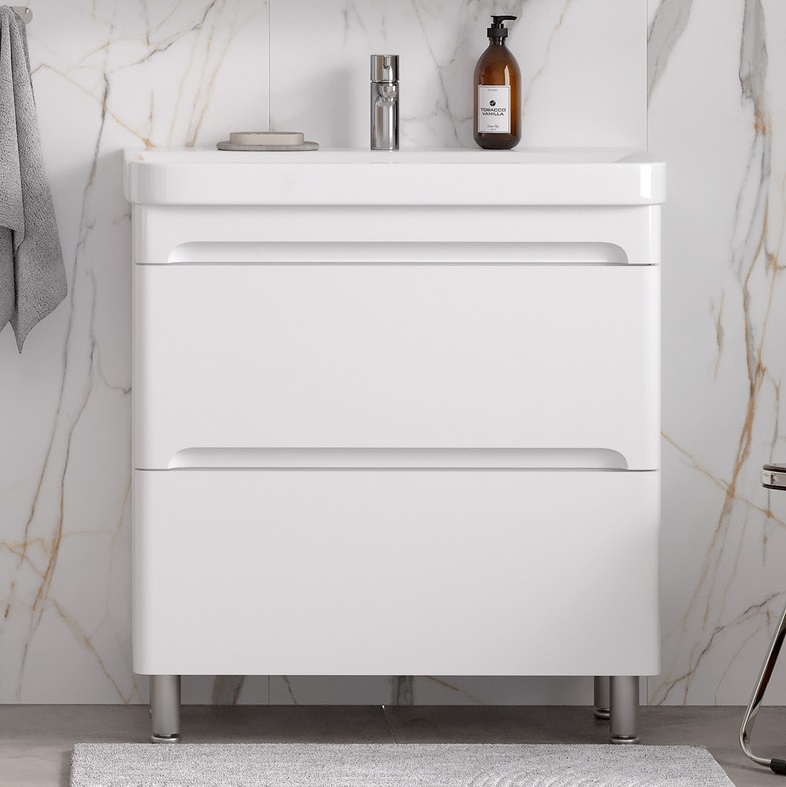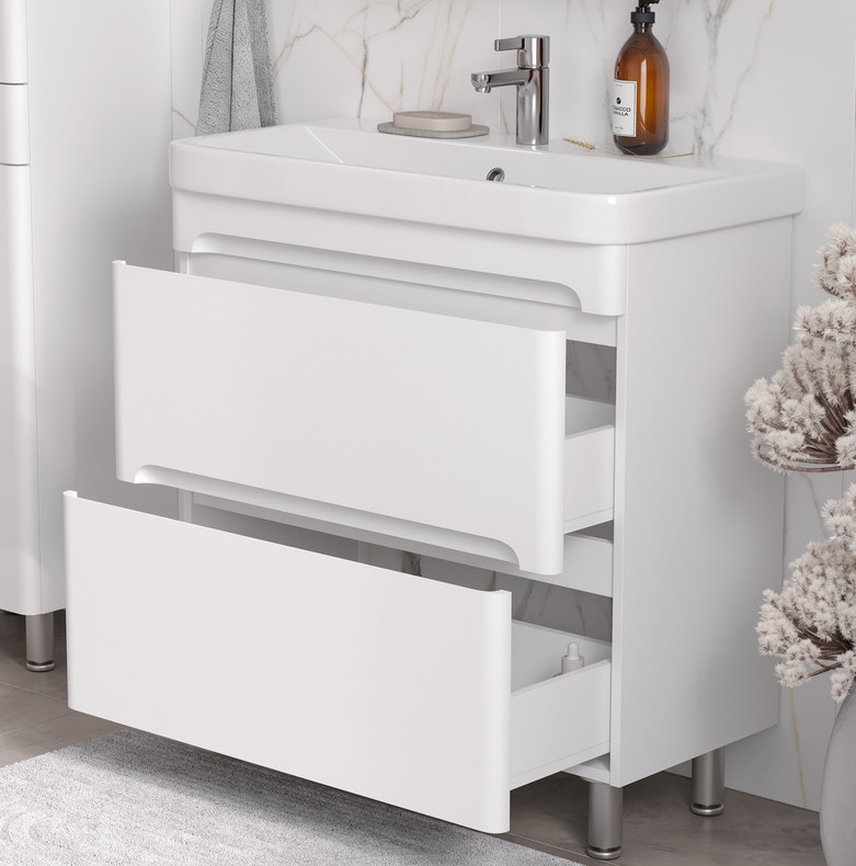 Тумба с раковиной Equil Nice 80 напольная, 2 ящика, белый |