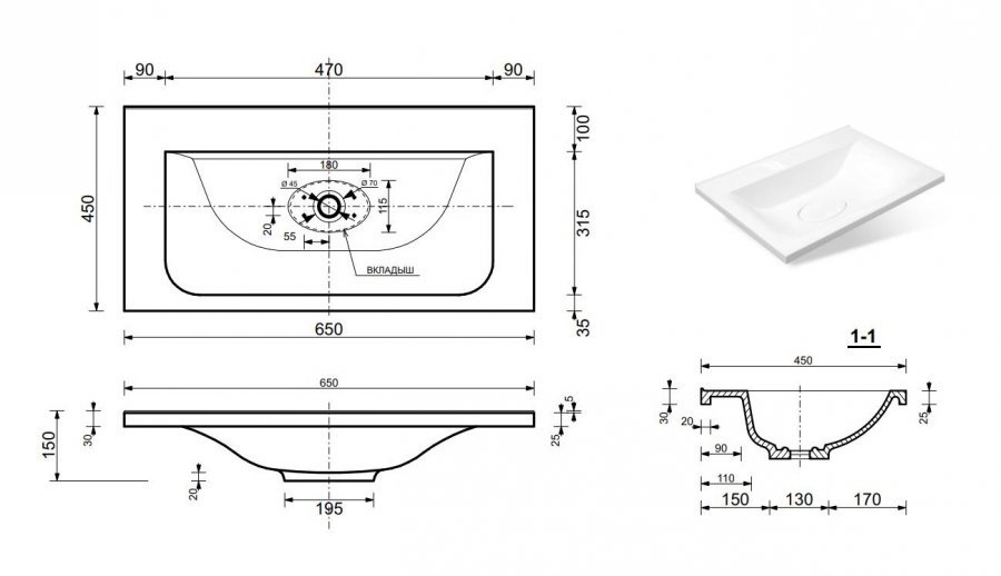 Тумба с раковиной Эстет Bali Classic 65 напольная, 3 ящика, белая |