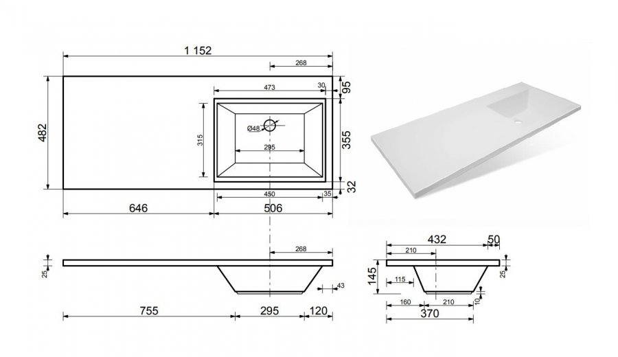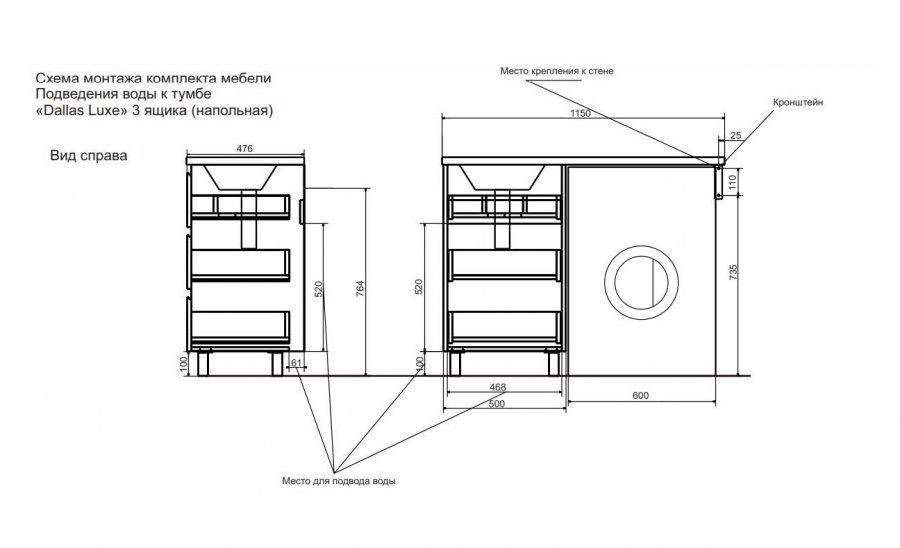 Тумба с раковиной Эстет Dallas Luxe 115 R напольная, 3 ящика, белая, с кронштейном |