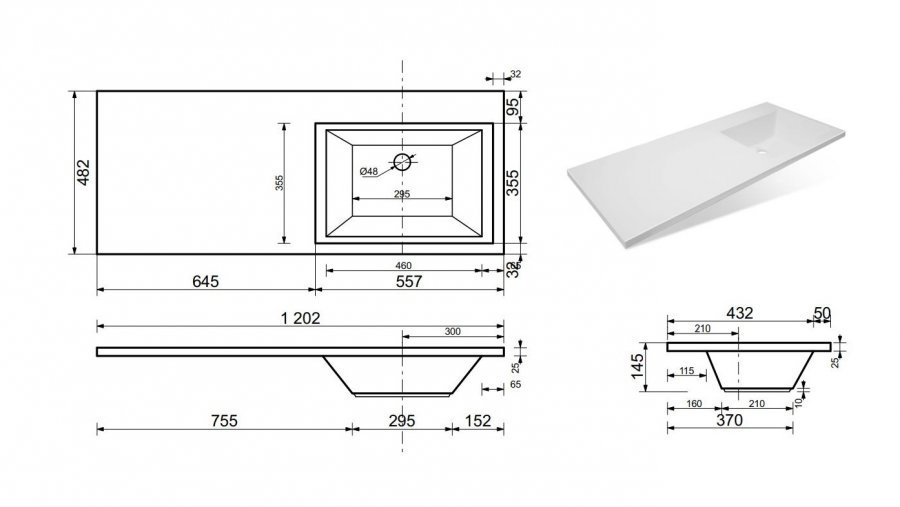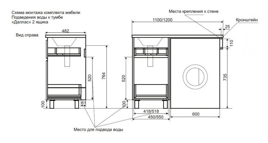 Тумба с раковиной Эстет Dallas Luxe 120 R напольная, 2 ящика, белая, с кронштейном |