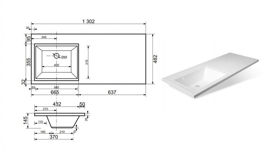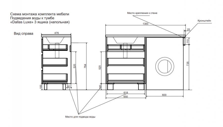 Тумба с раковиной Эстет Dallas Luxe 130 L напольная, 3 ящика, белая, с кронштейном |