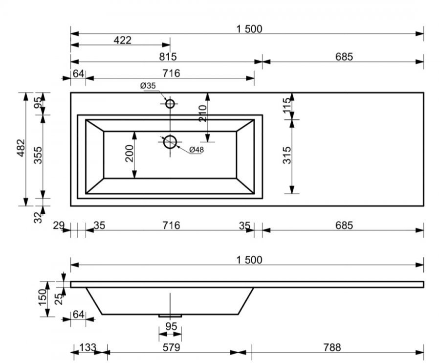 150x48.2x88 см