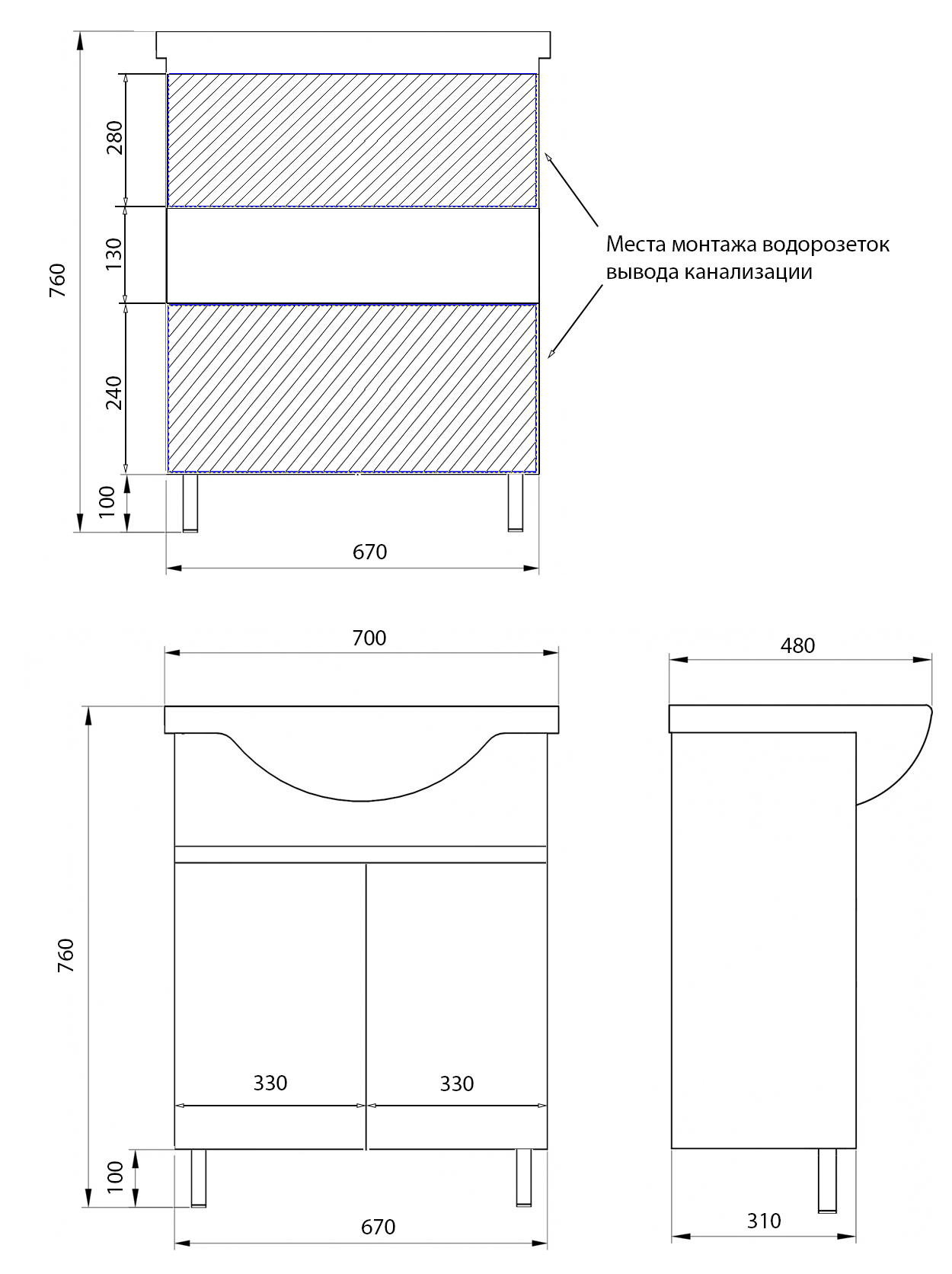 Отверстия под смеситель:
