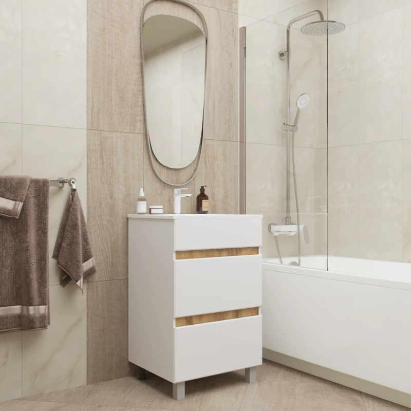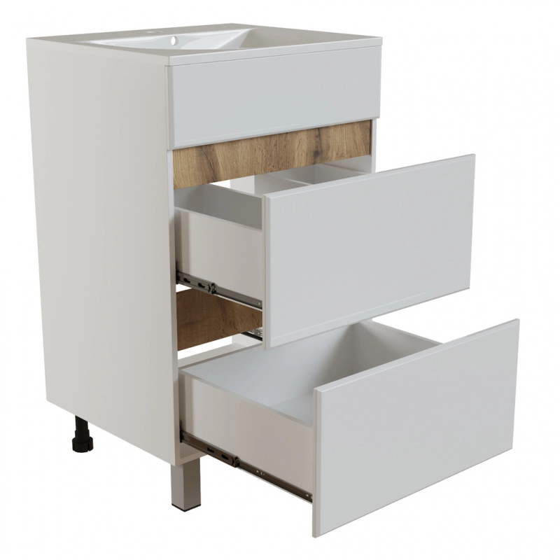 Тумба с раковиной Mixline Брикс 60 белый, дуб вотан, 2 ящика