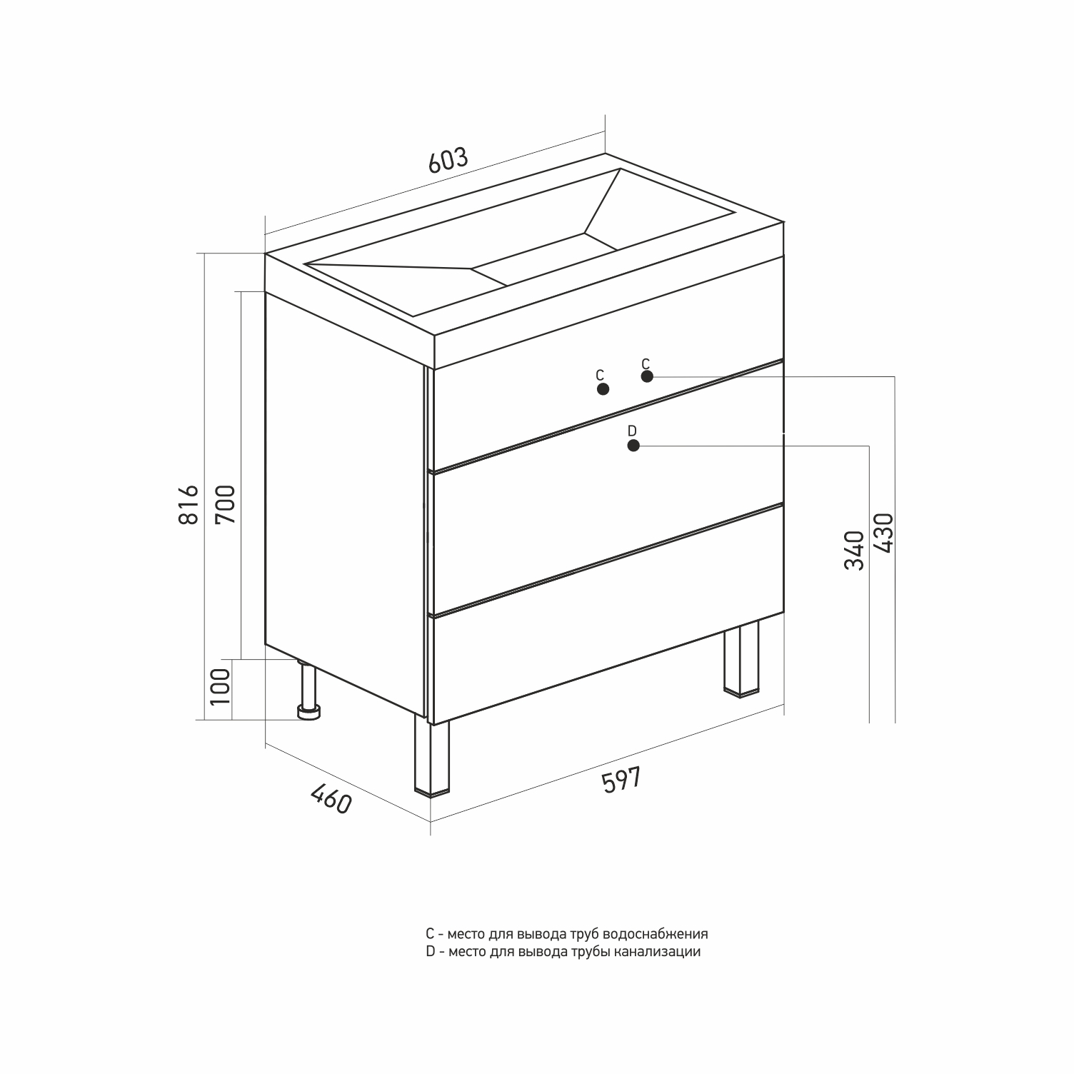 Тумба с раковиной Mixline Брикс 60 белый, дуб вотан, 2 ящика |